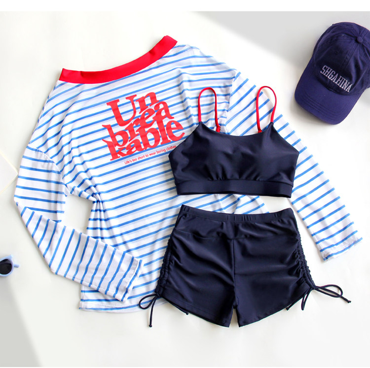 長袖防曬速乾兒童泳衣分體三件套女大童帶胸墊初中生少女溫泉泳裝