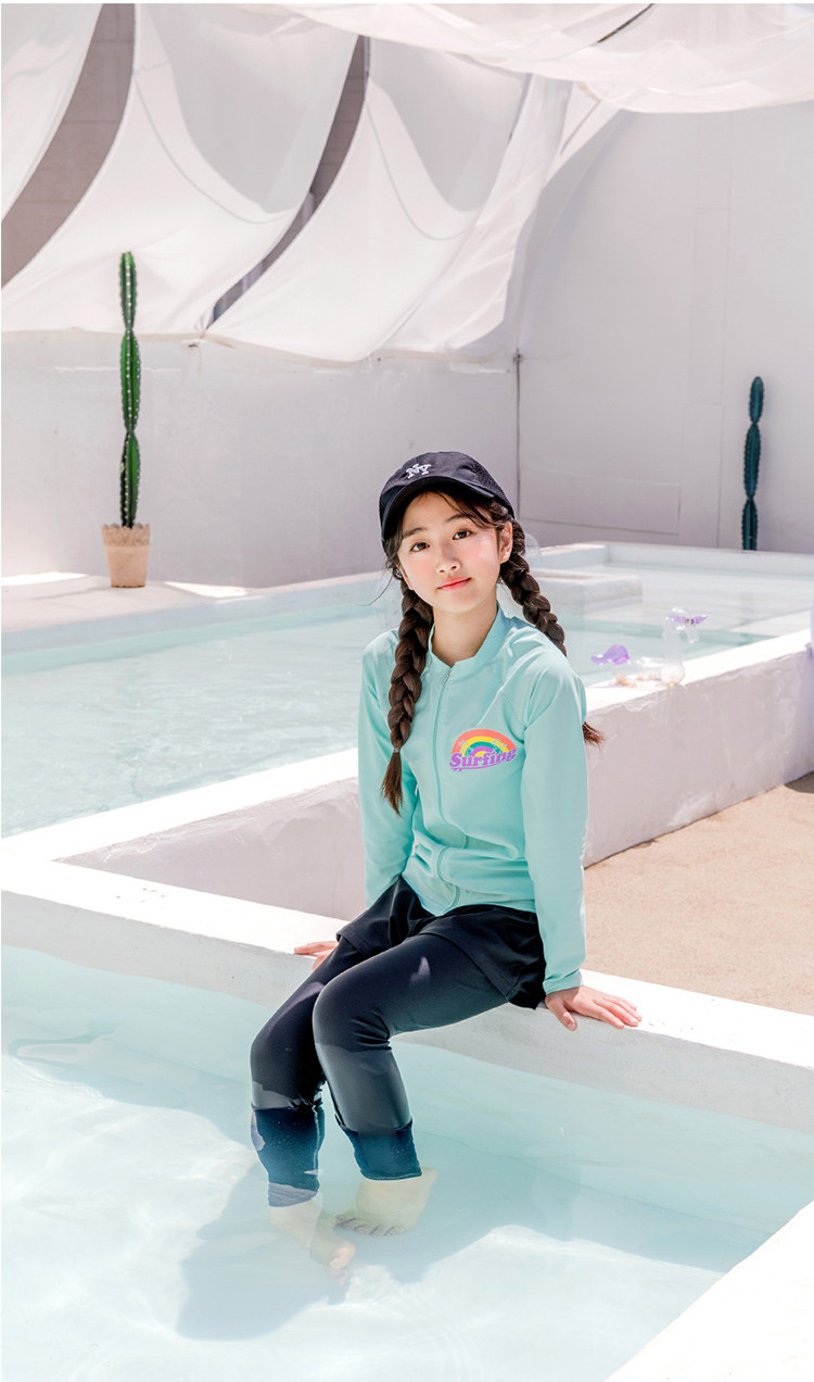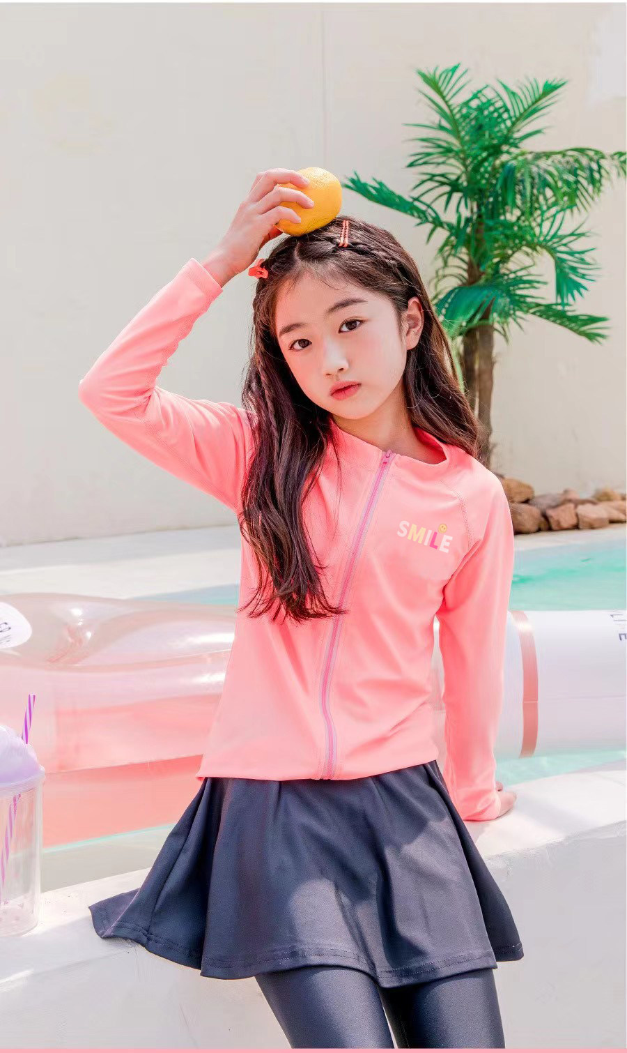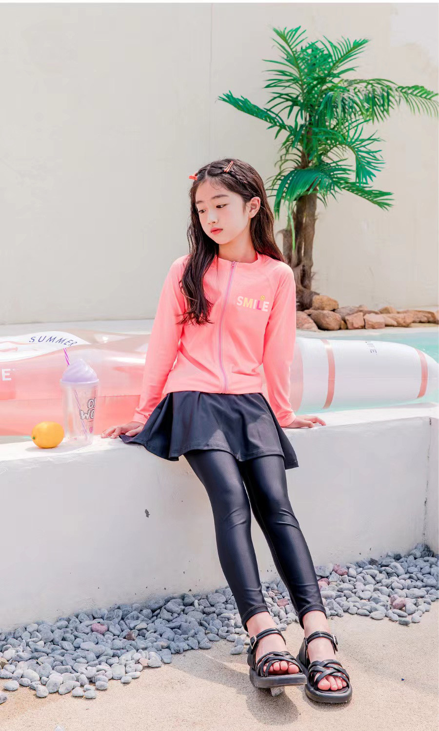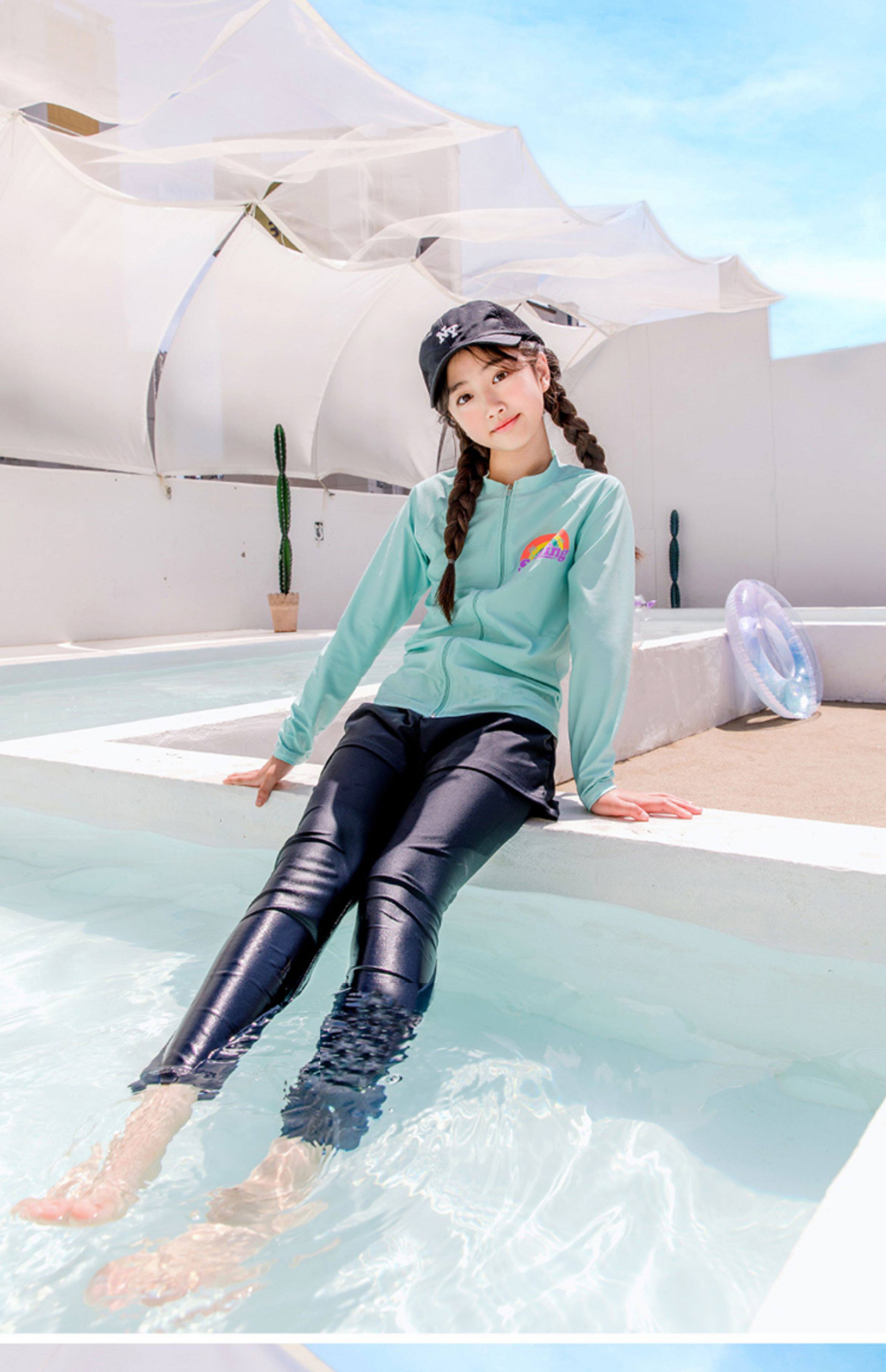 兒童泳衣女童分體裙式長袖長褲遊泳衣中大童女孩寶寶溫泉速乾套裝
