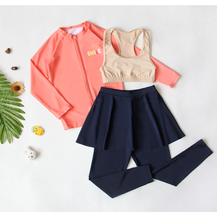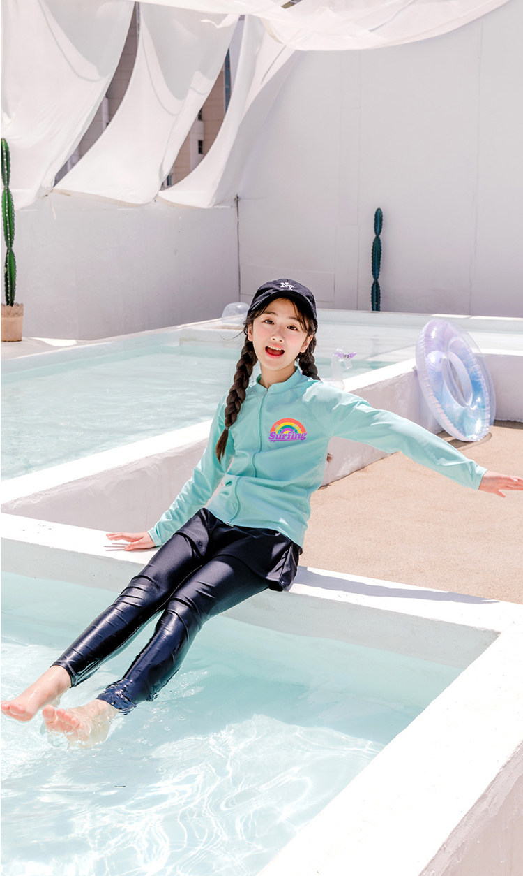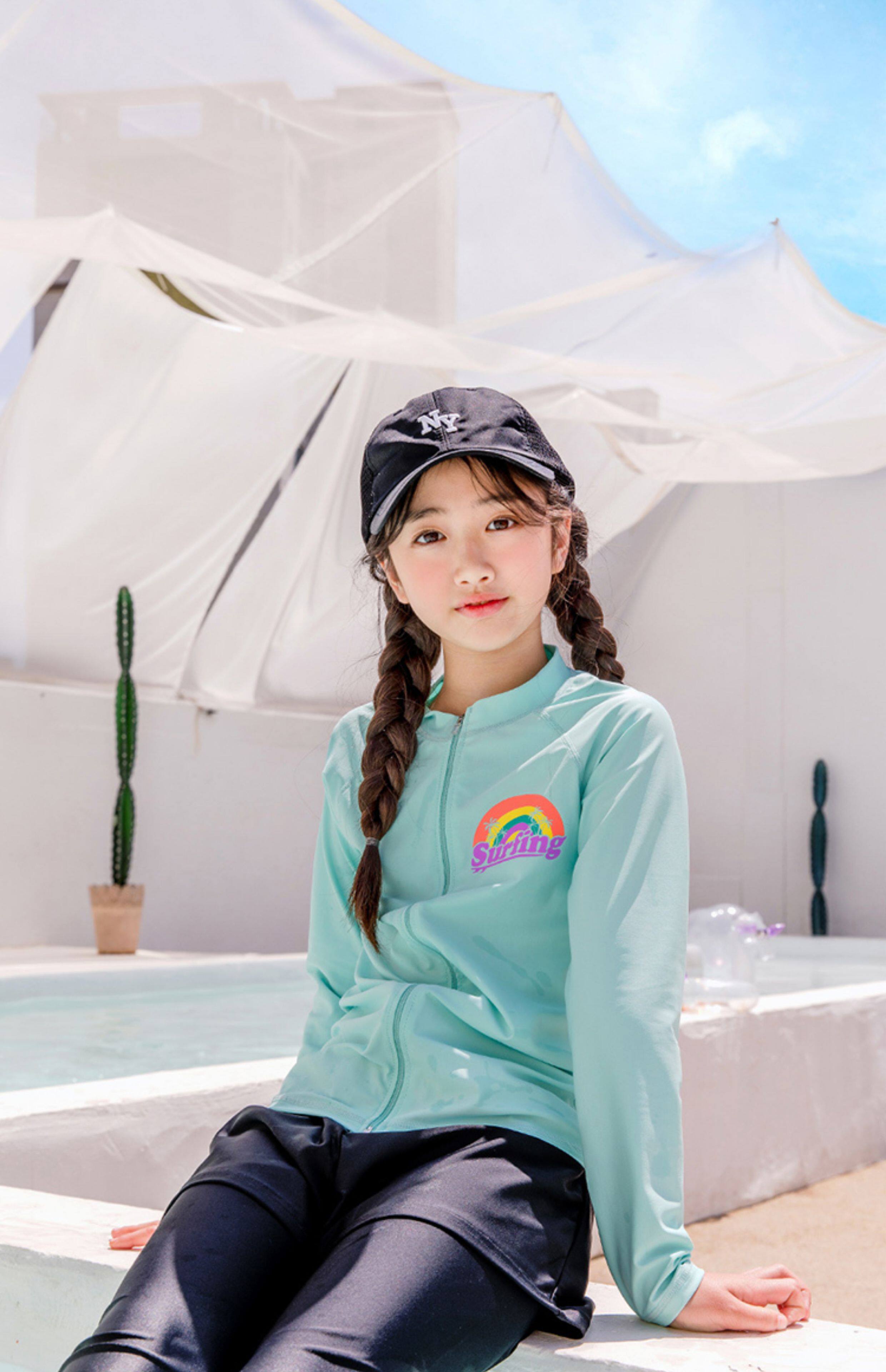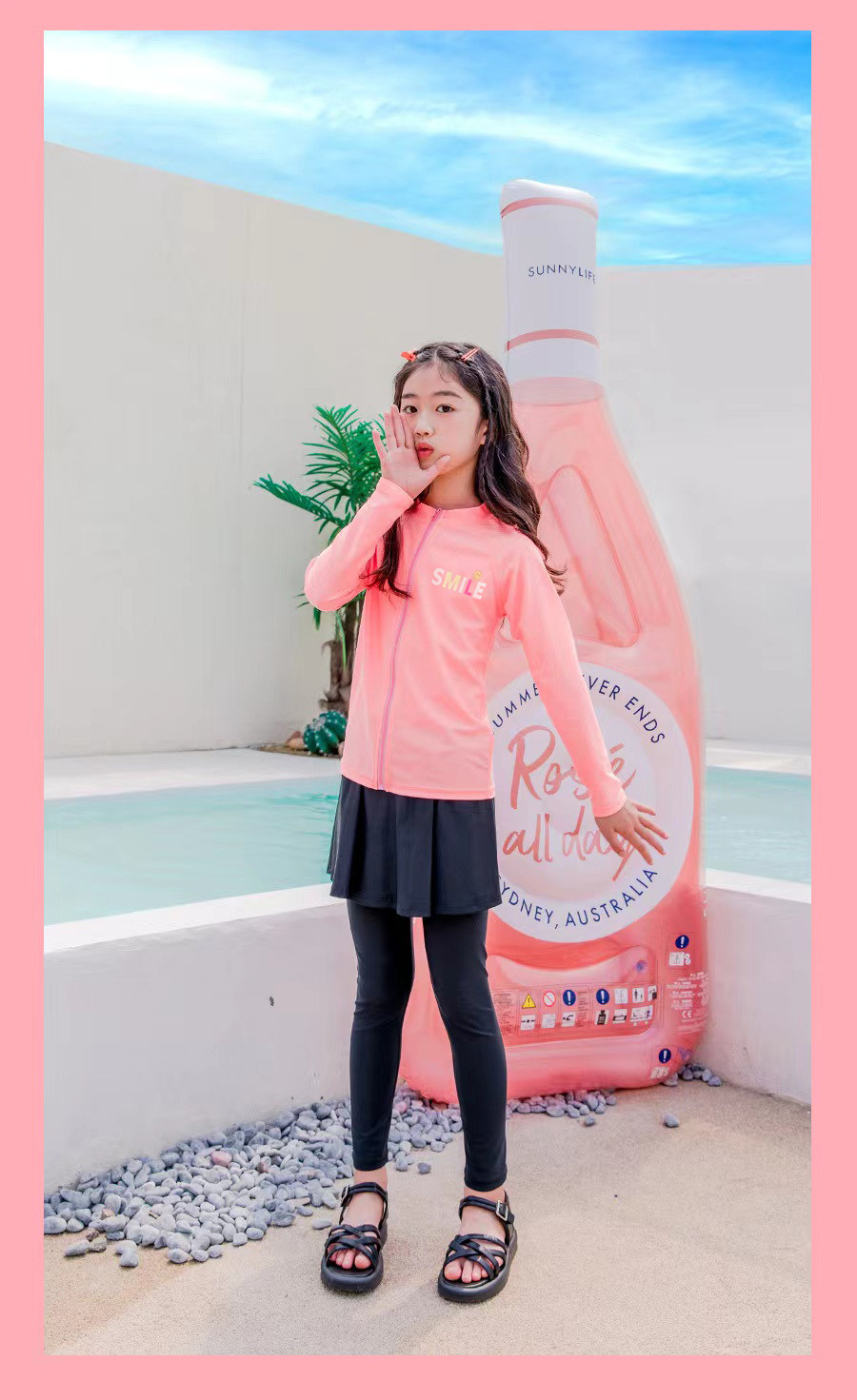 兒童泳衣女童分體裙式長袖長褲遊泳衣中大童女孩寶寶溫泉速乾套裝