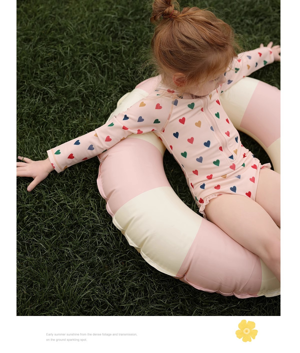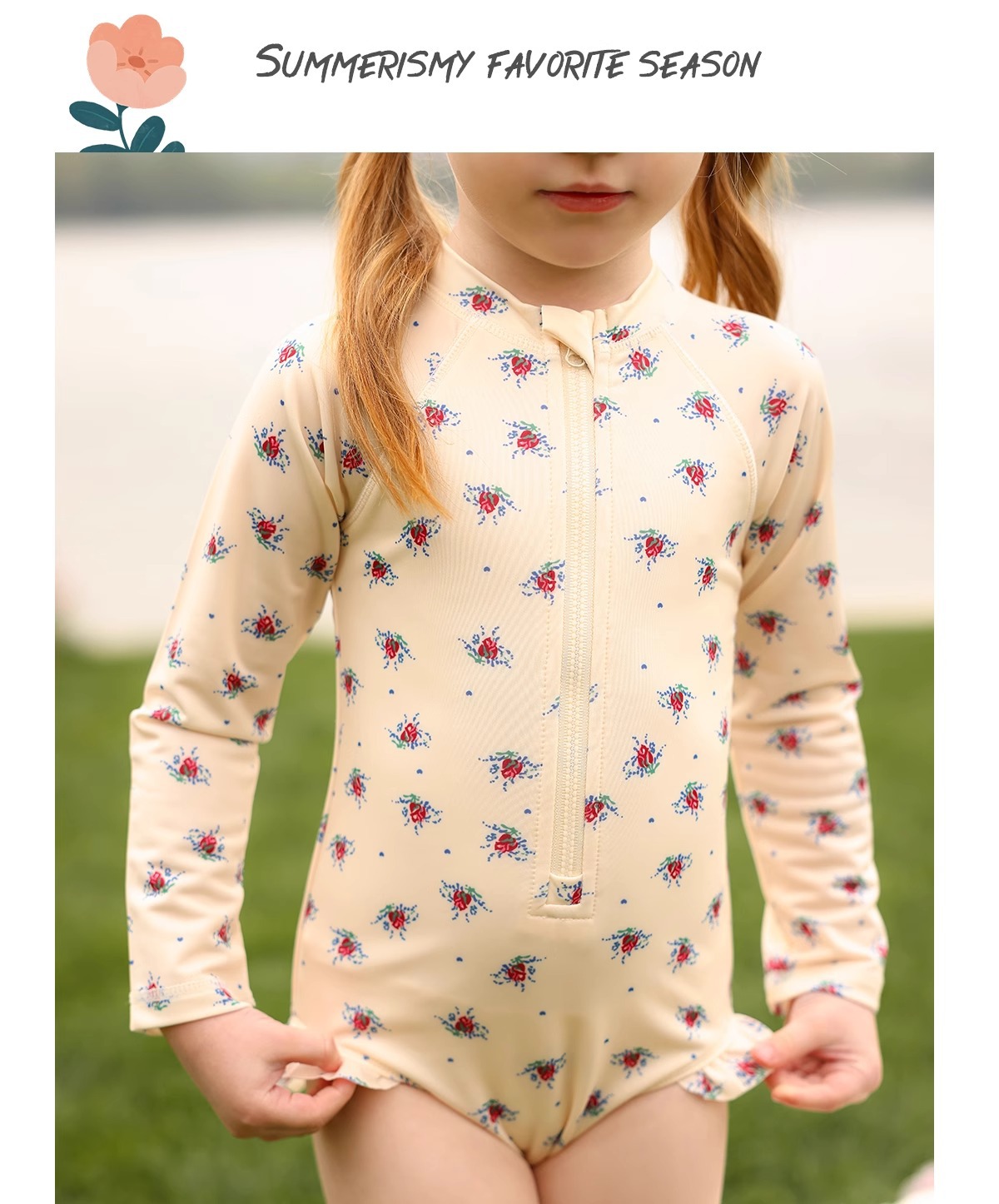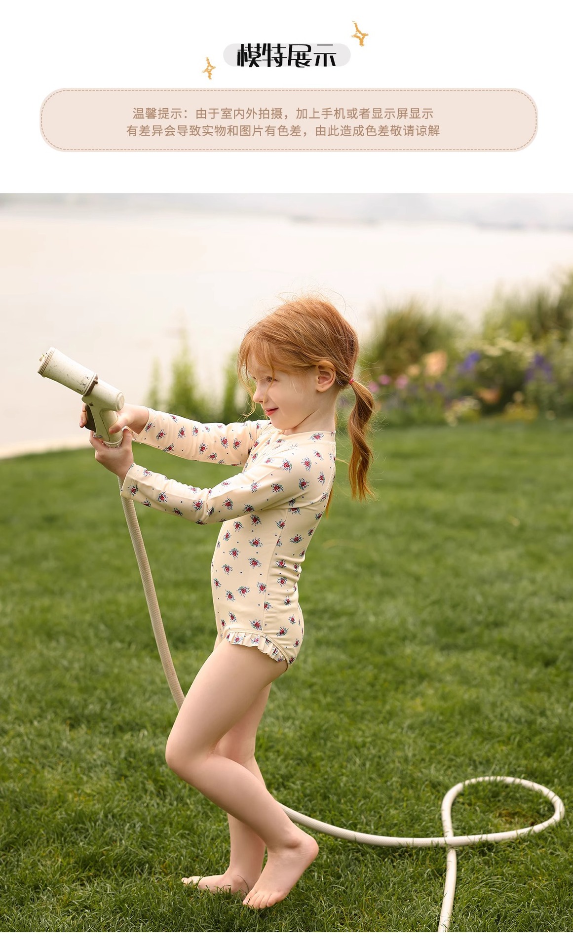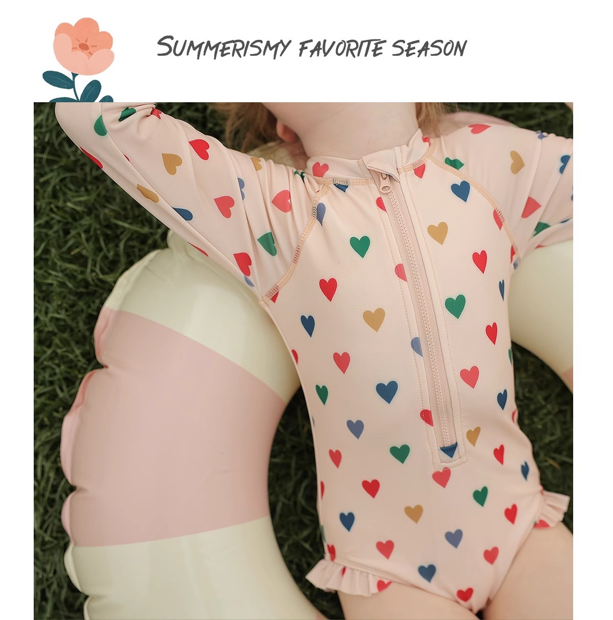 ♤女童泳衣2026新款夏季可愛連體式中大童洋氣防曬長袖小女孩遊泳