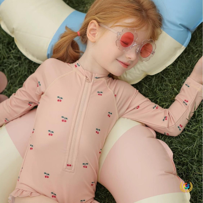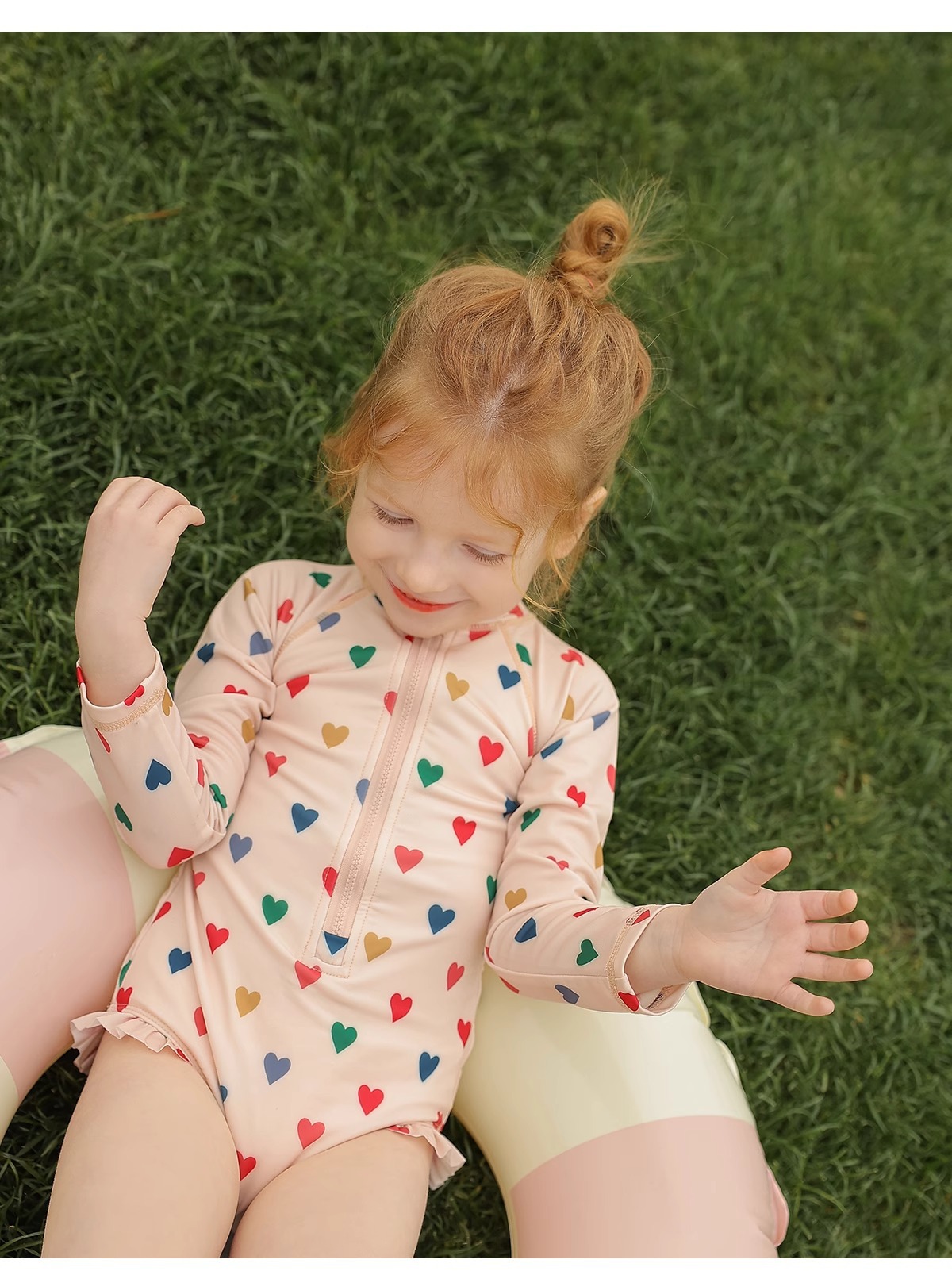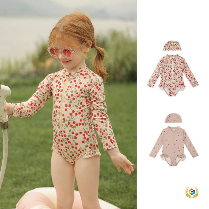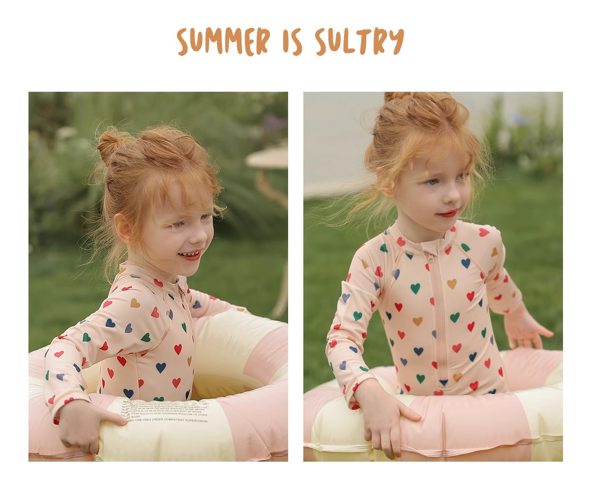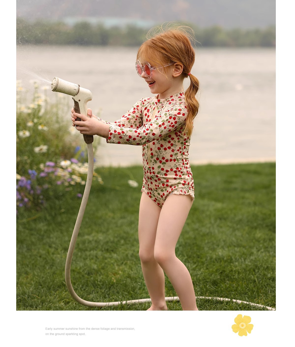 ♤女童泳衣2026新款夏季可愛連體式中大童洋氣防曬長袖小女孩遊泳