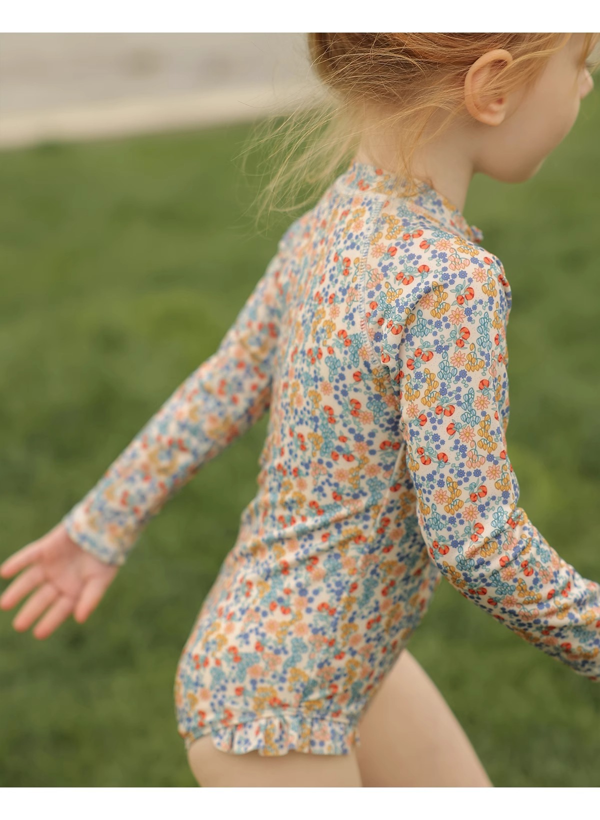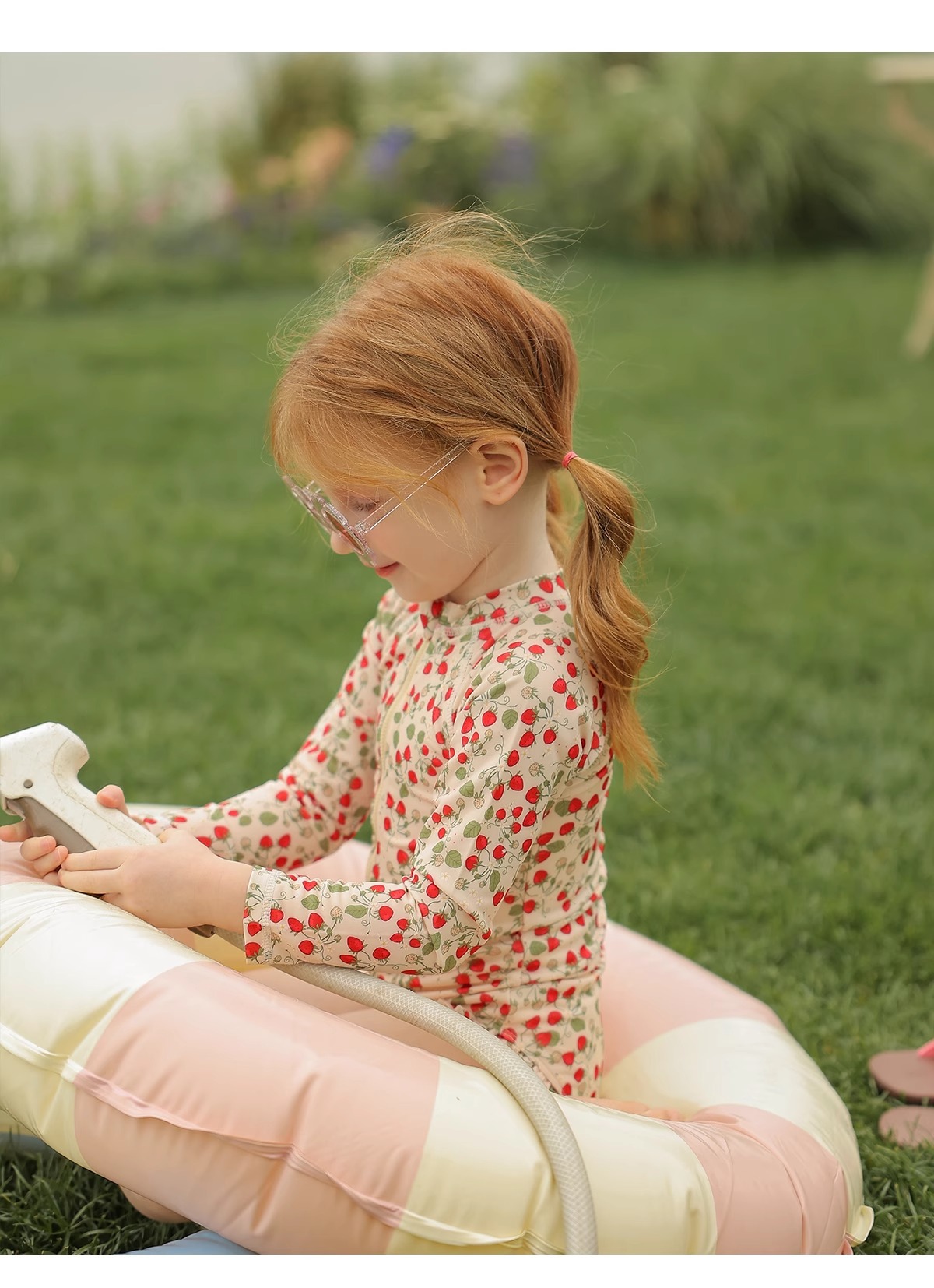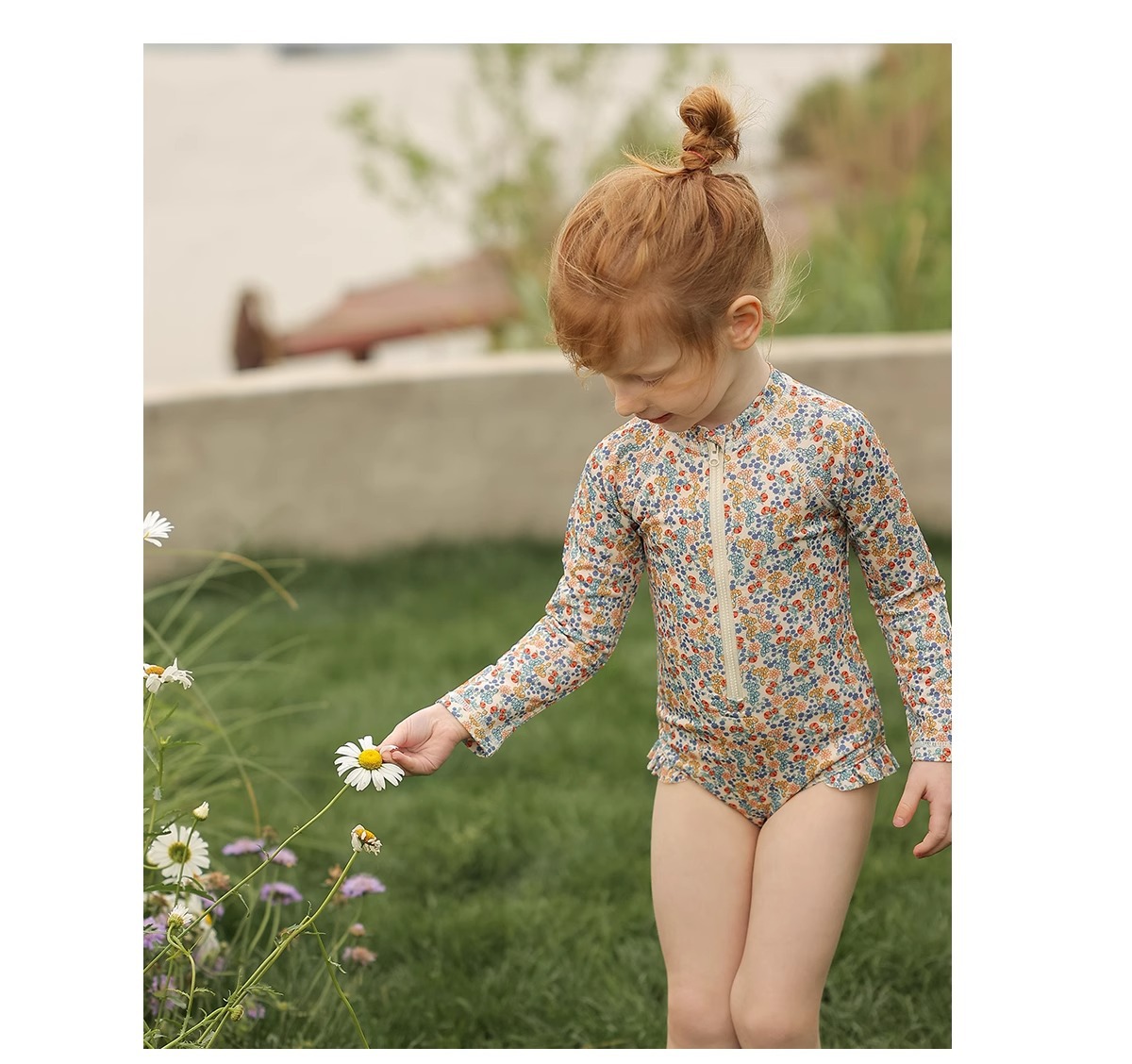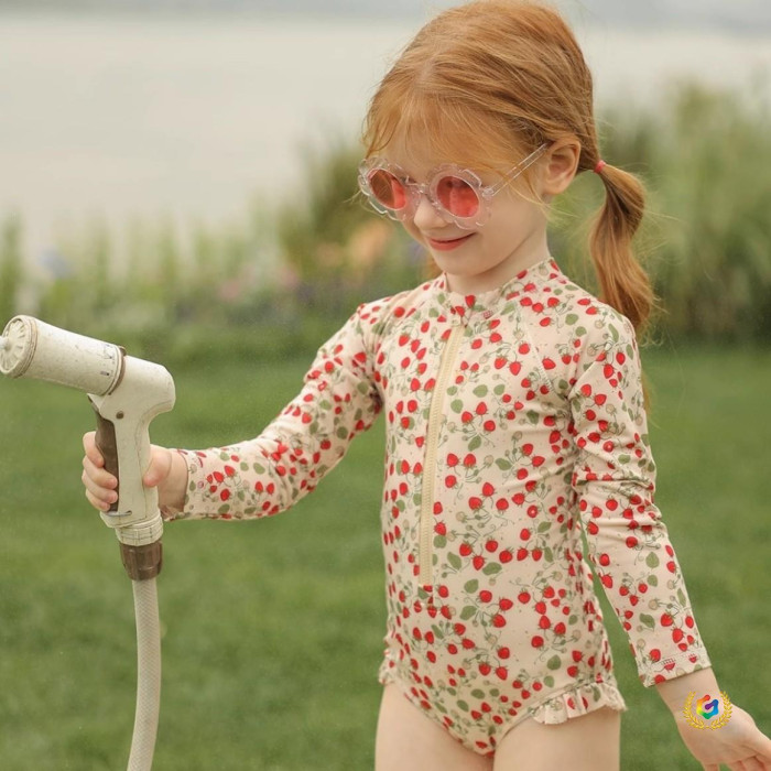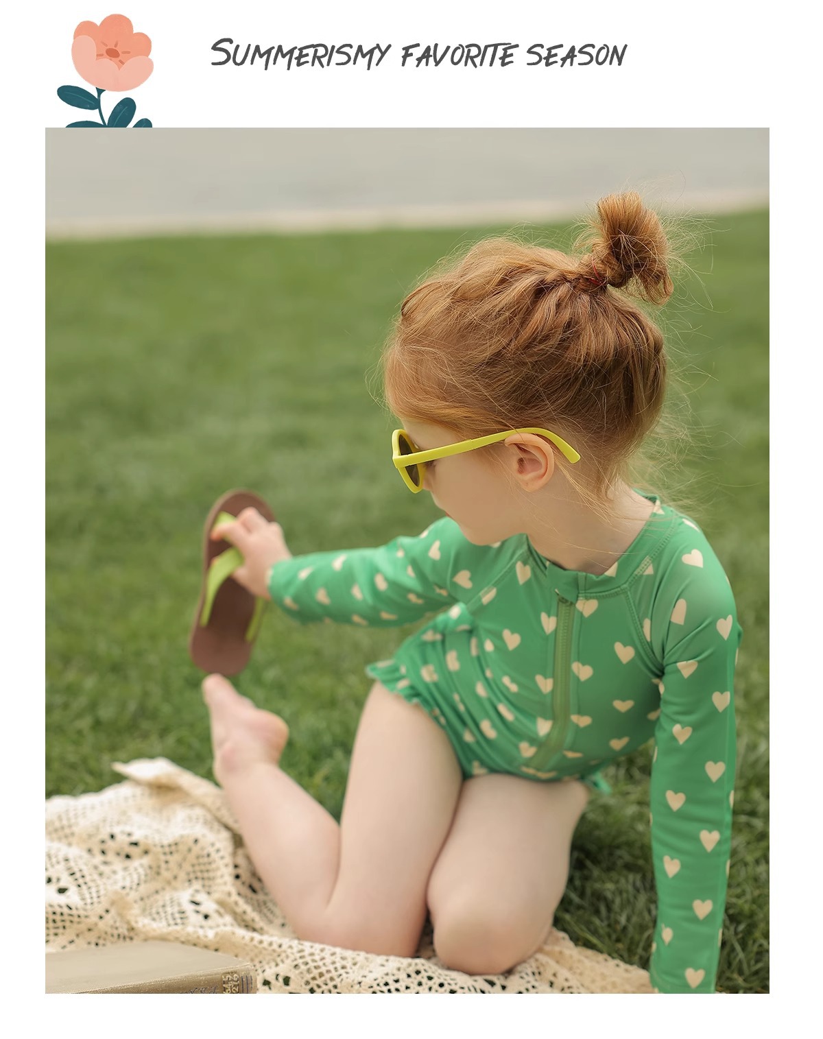 ♤女童泳衣2026新款夏季可愛連體式中大童洋氣防曬長袖小女孩遊泳