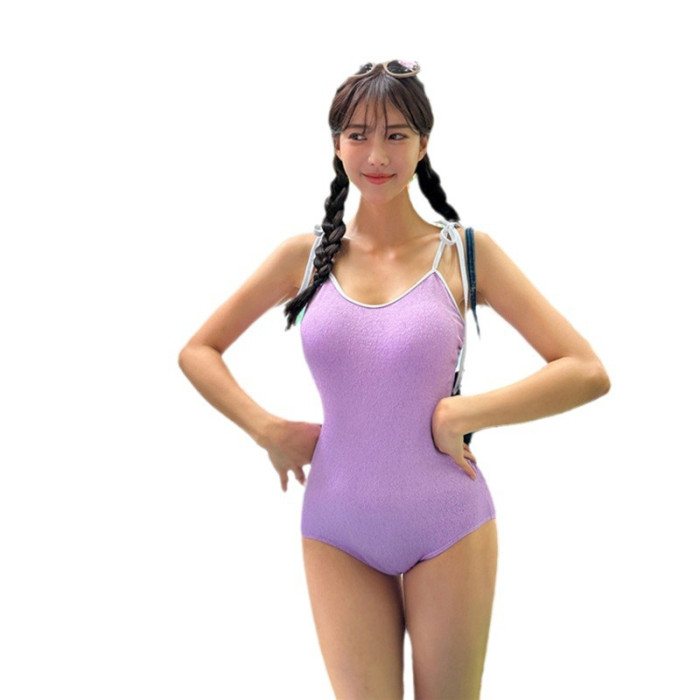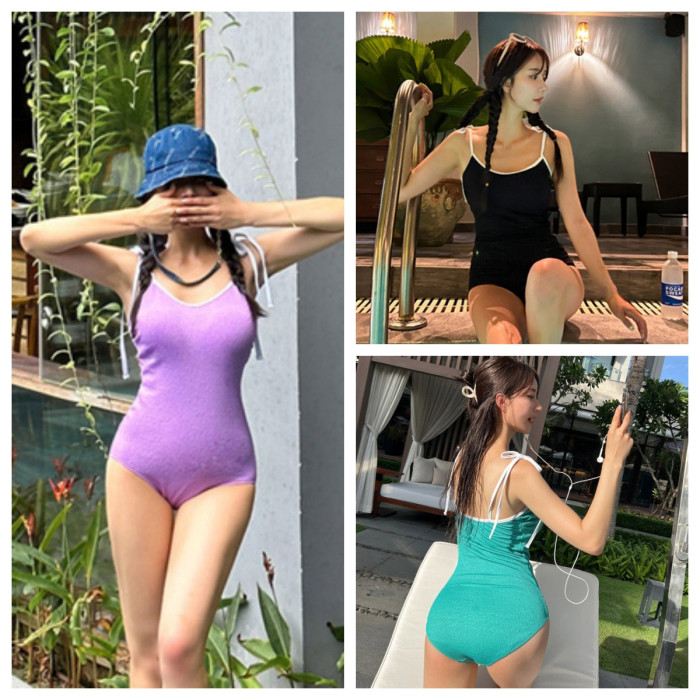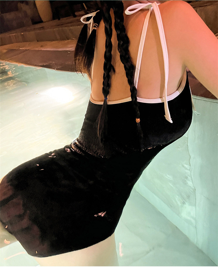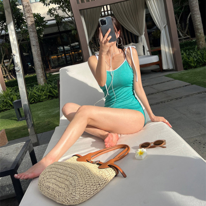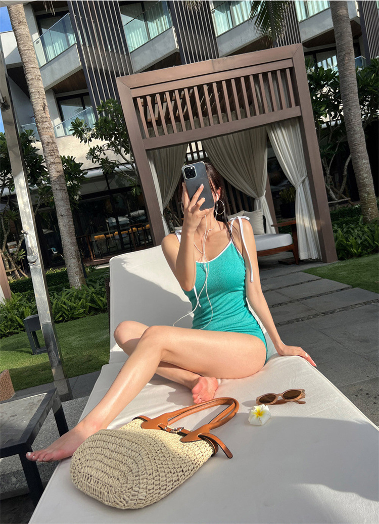 3色韓國2024新款溫泉簡約時尚大氣性感純色露背連體泳衣女