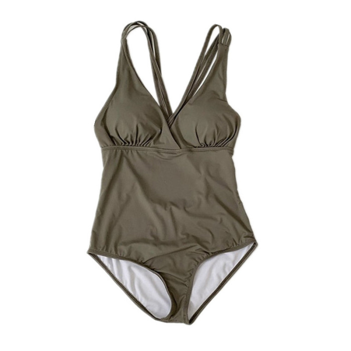 韓國泳衣女ins新款時尚性感露背溫泉顯瘦遮肚連體小胸聚攏遊泳裝
