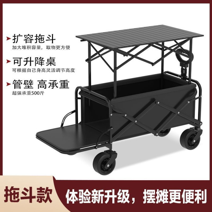 戶外露營車移動多功能擺地攤可攜式家用可升降折疊野餐擺攤小推車