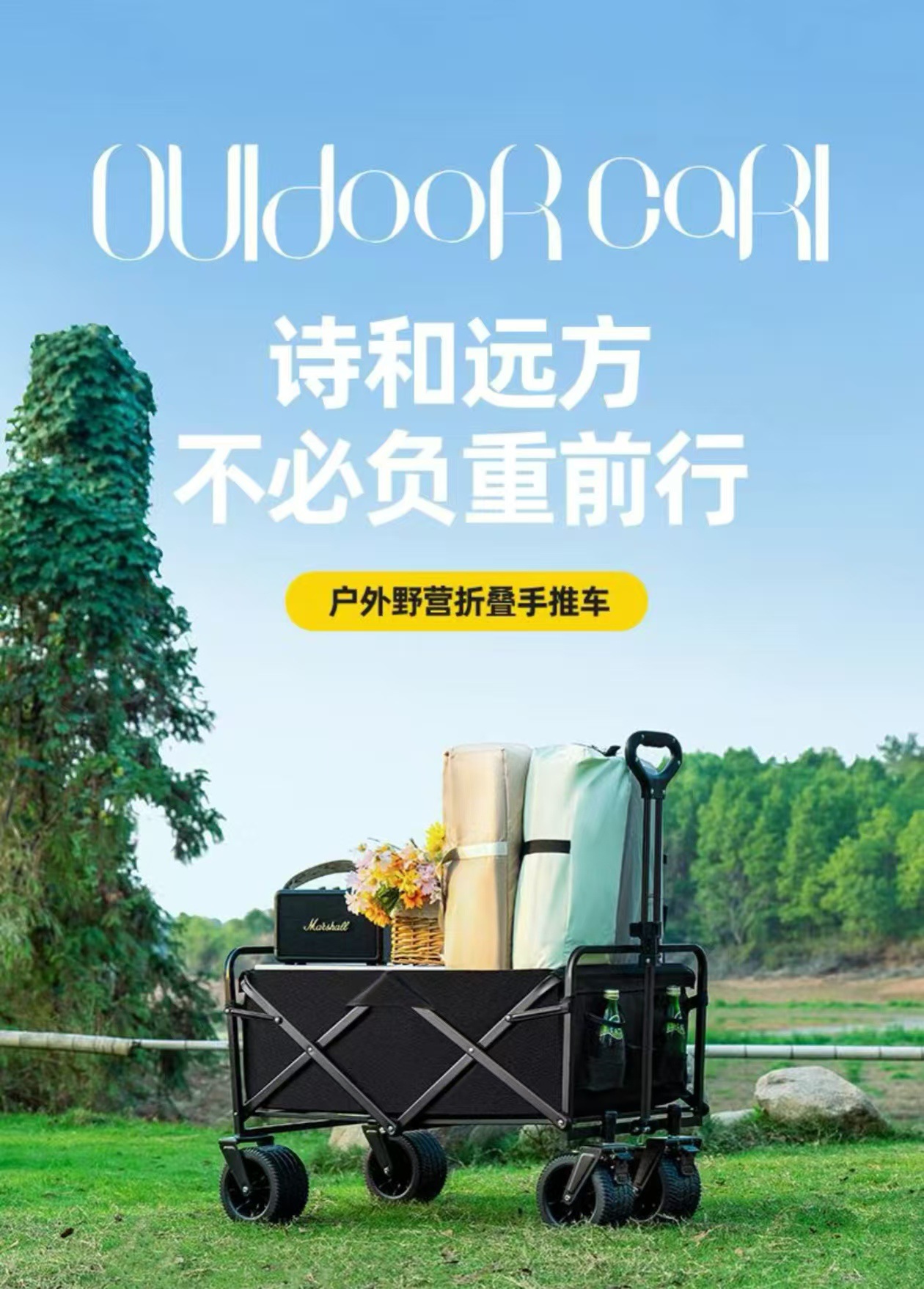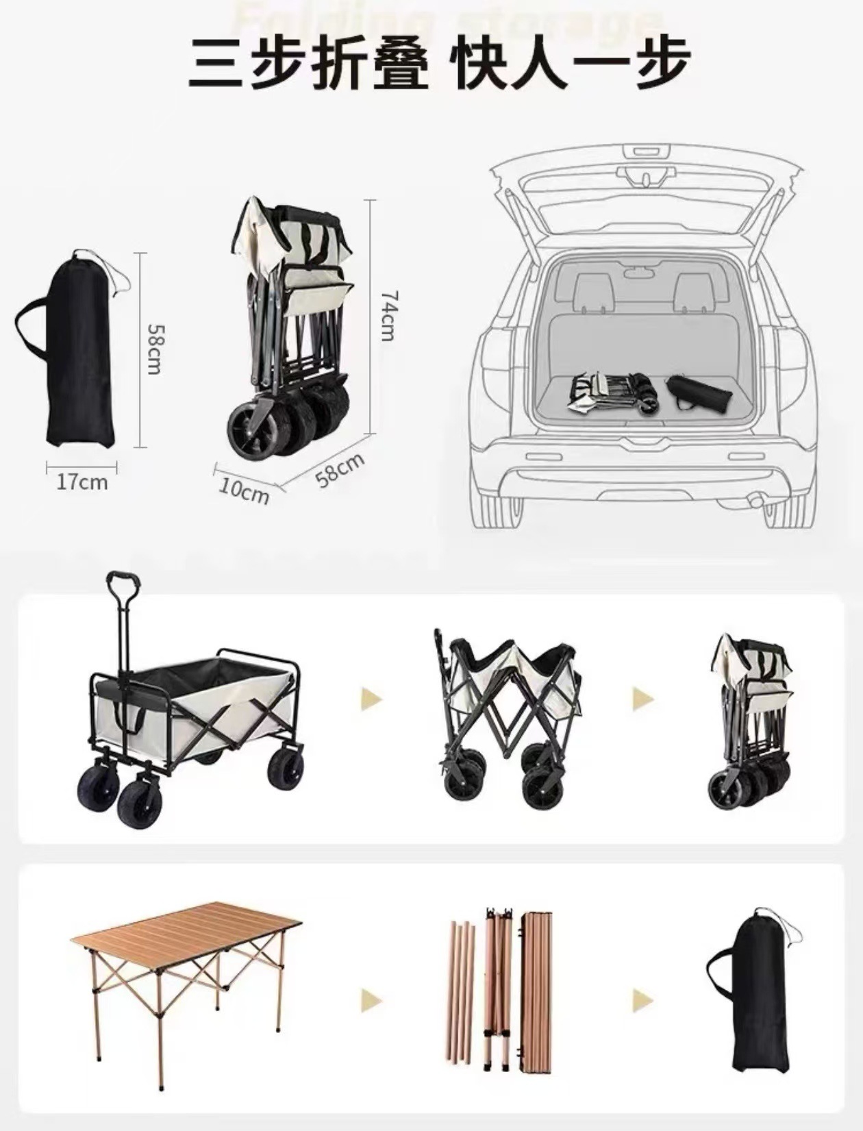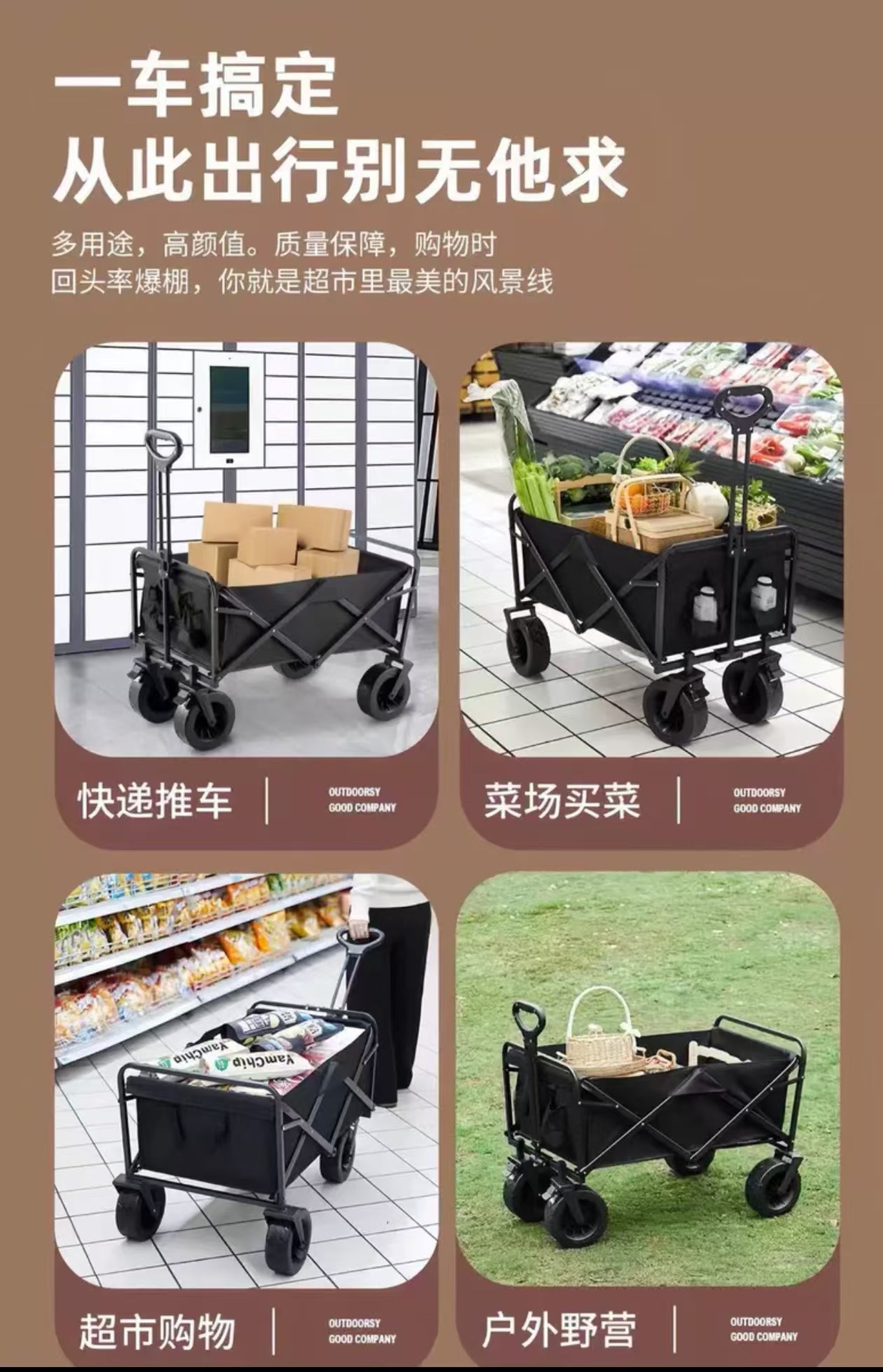 戶外露營車可折疊手推車野外野營野餐營地車拉桿小推車擺攤小拖車