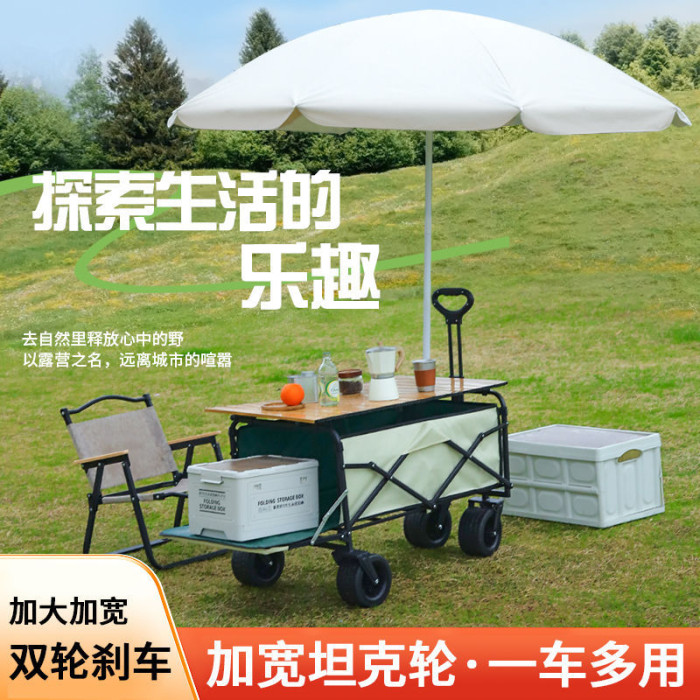 | 顔色 | 營地車+桌板+升降桿+遮陽傘-可後繙十寸坦克輪米綠/雙刹車◁ |