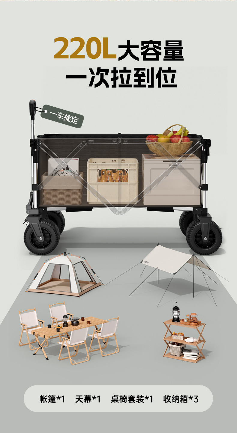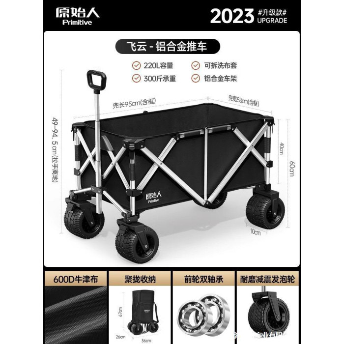 露營車合金折疊野餐原始人拉車車營車手拖車手拉鋁合金推車原始戶
