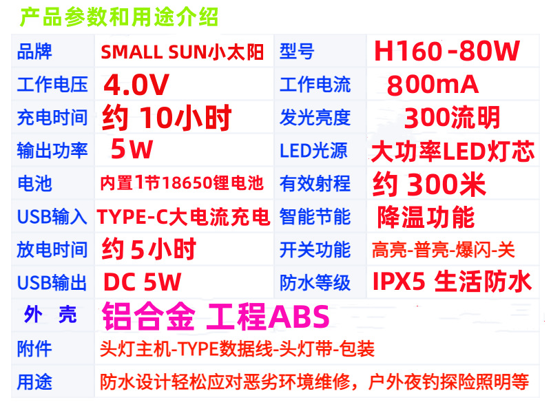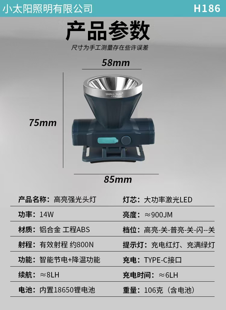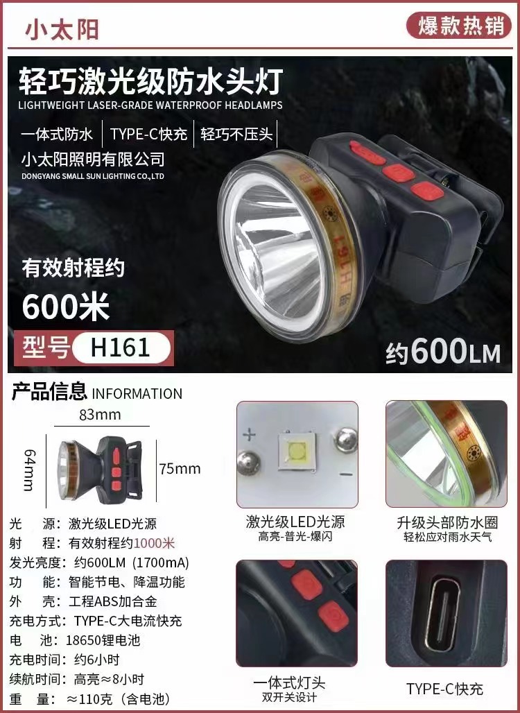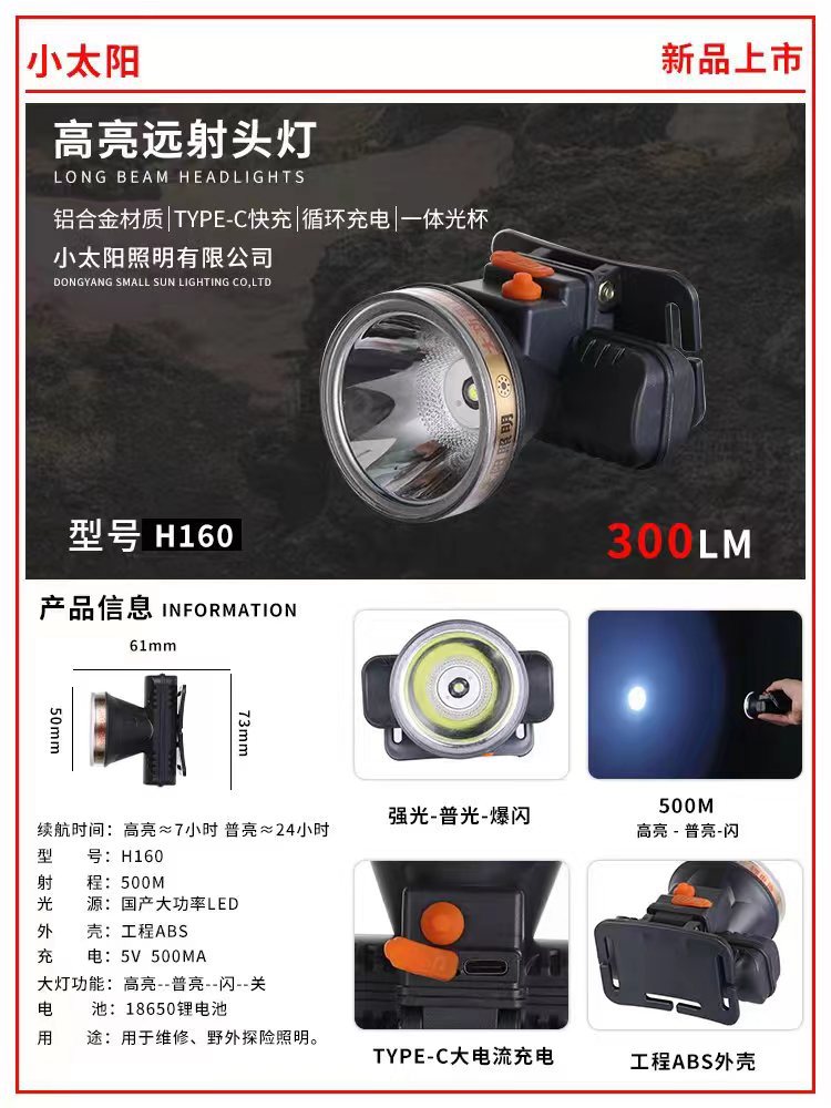 小太陽H160超亮頭戴式充電防水強光礦燈鋰電頭燈戶外夜釣探洞照明