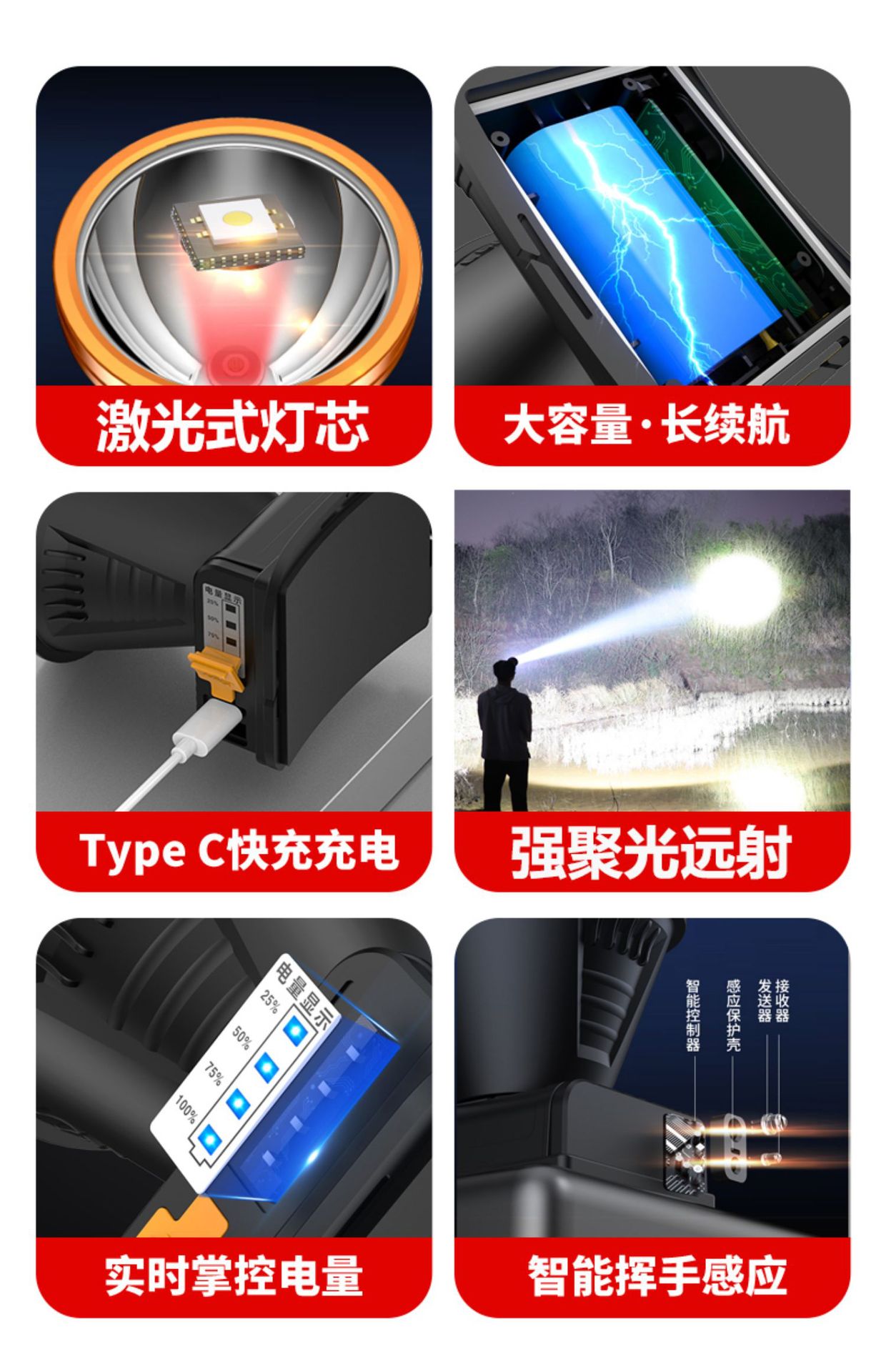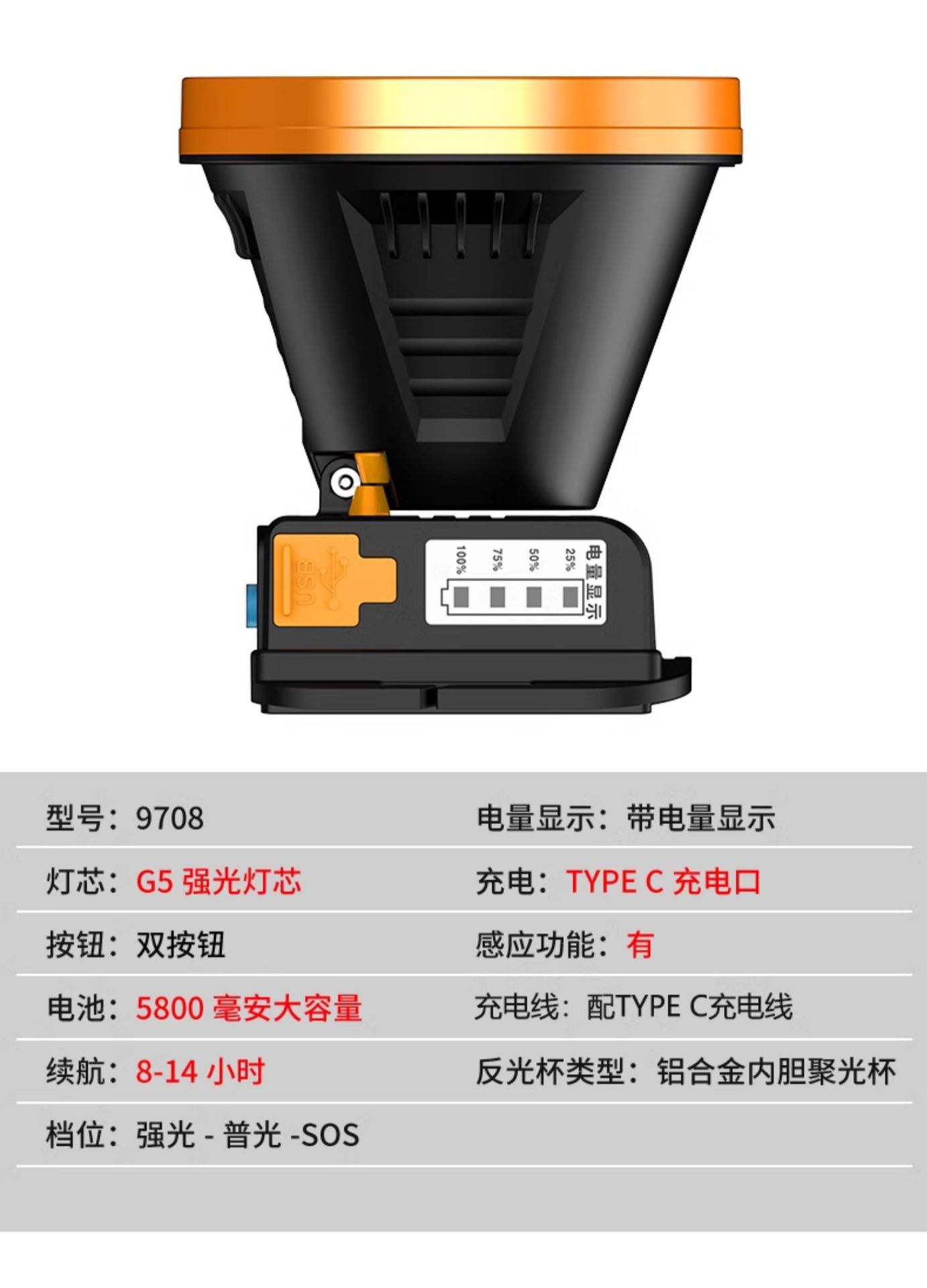 感應頭燈強光充電超亮頭戴式戶外照明燈野外釣魚電筒超長續航鋰電