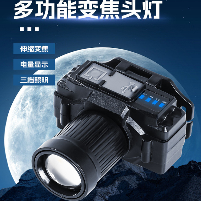 強光充電鋰電小頭燈 迷你LED戶外頭戴式手電釣魚遠射超亮礦燈