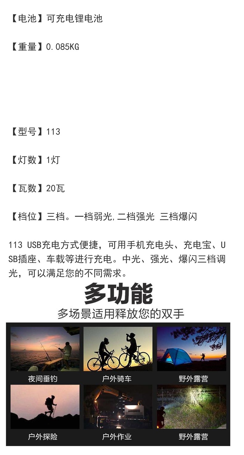| 顔色 | 高容量20W變焦113+電量顯示+C口充電 |