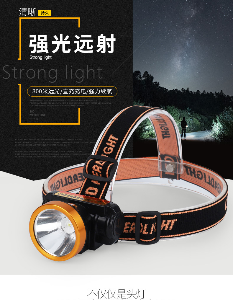 充電式大功率強光頭燈led頭戴式釣魚頭燈戶外礦燈手電筒探照燈
