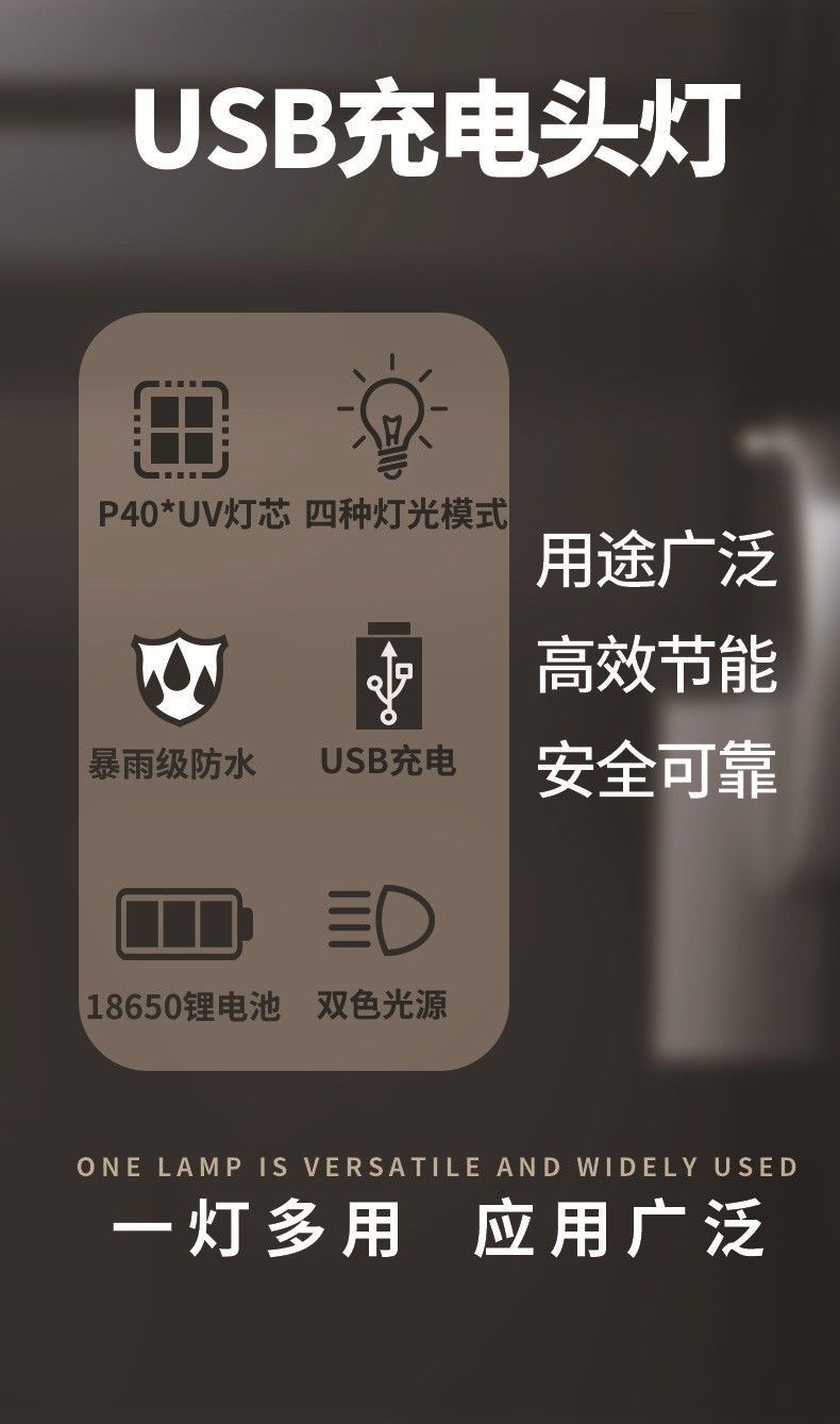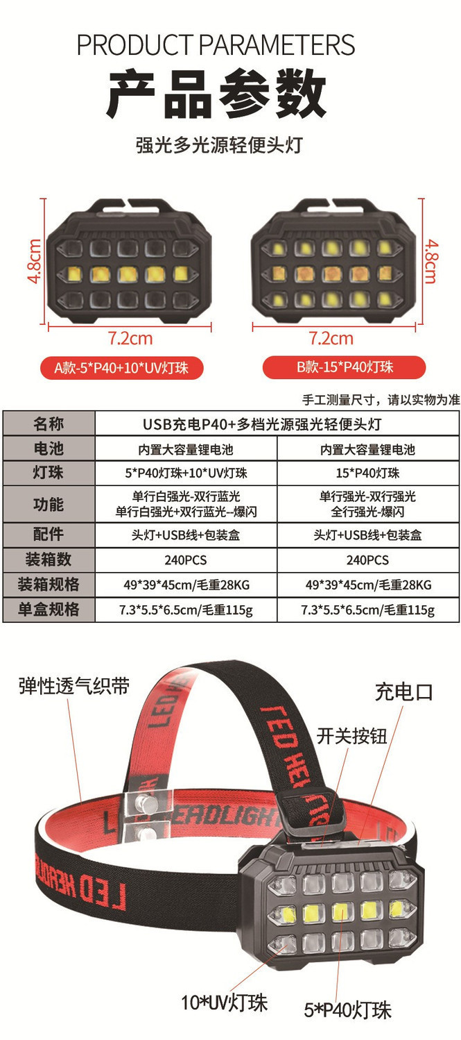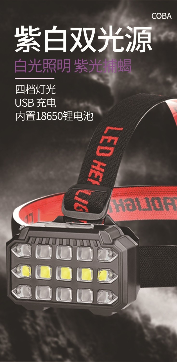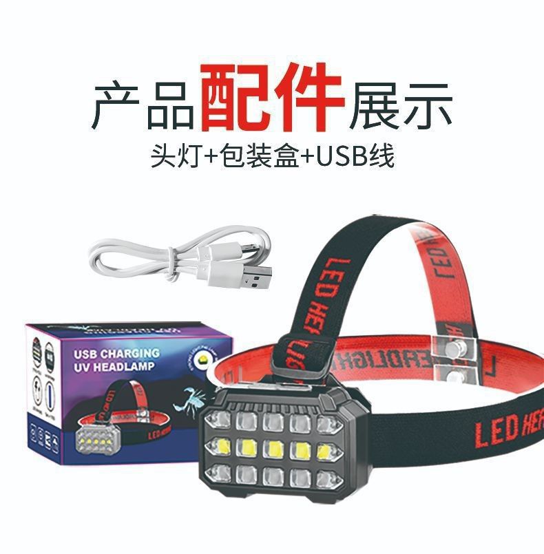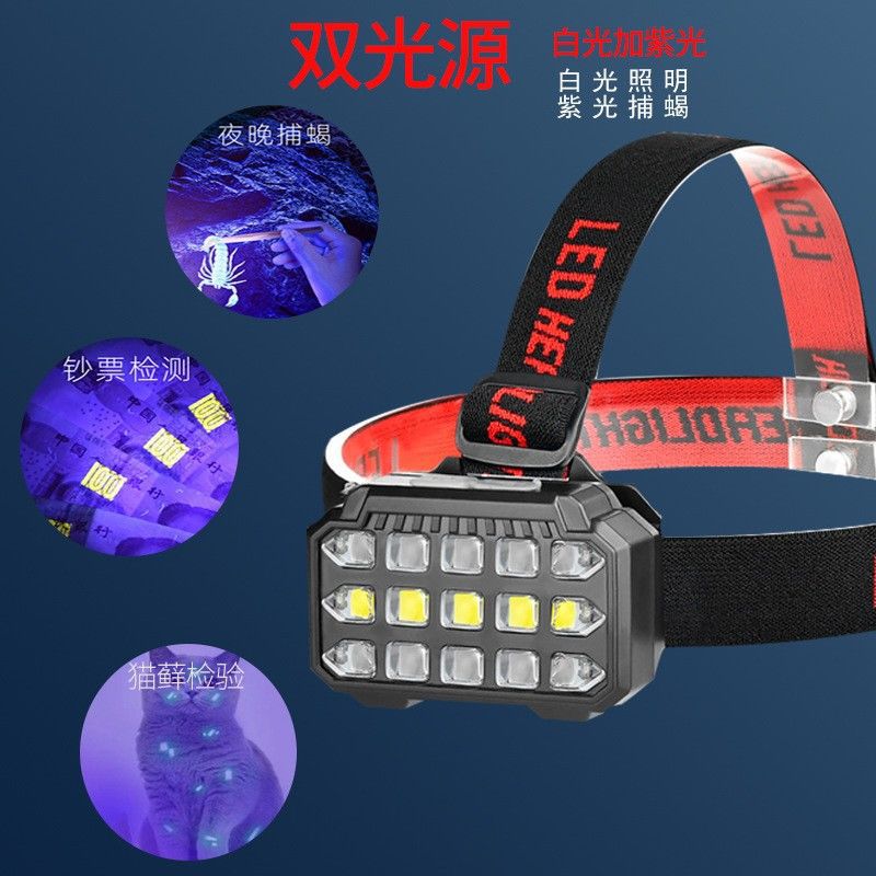 釣魚燈 LED紫光頭燈強光蠍子燈頭戴式專用照明勘探洞雙光充電頭燈