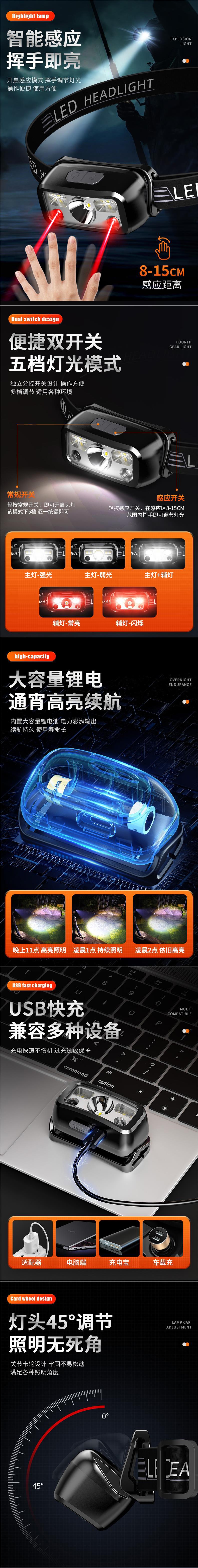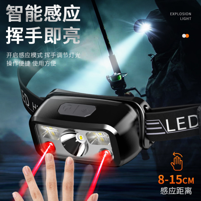兒童頭燈強光頭戴式超亮充電長續航戶外可攜式露營趕海感應防水