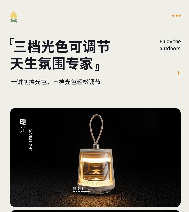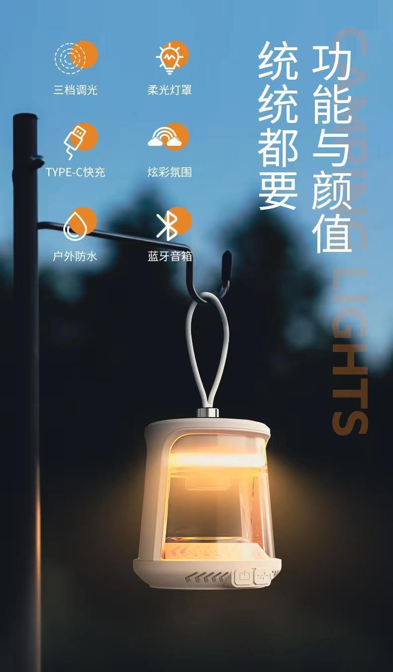 戶外露營超長續航掛式帳篷氛圍照明燈照明野營充電收納藍牙音響