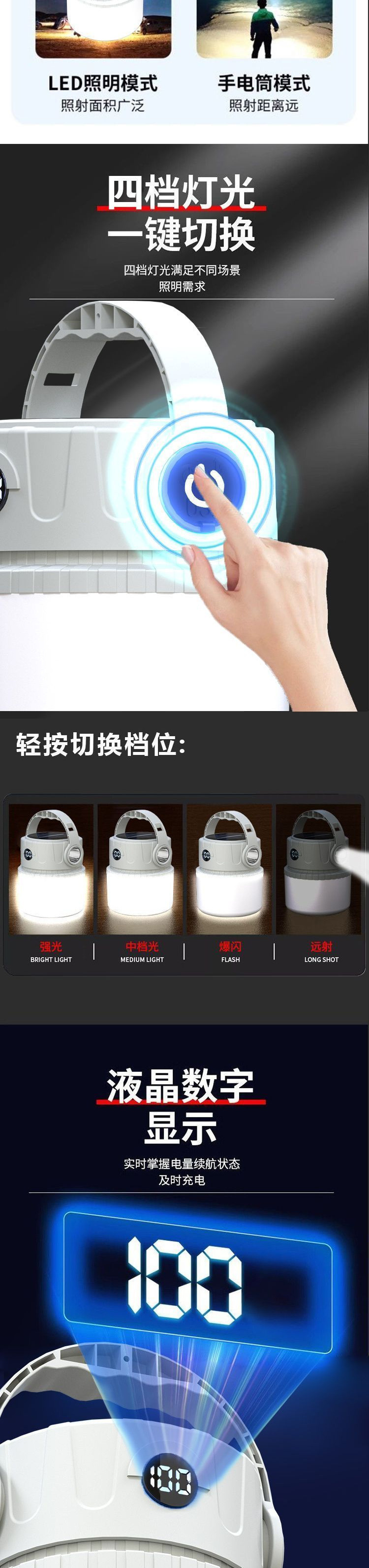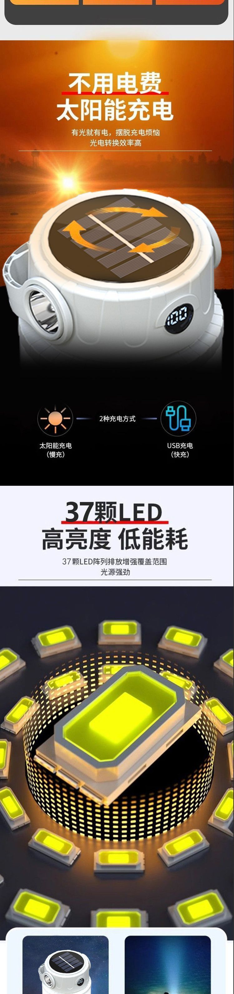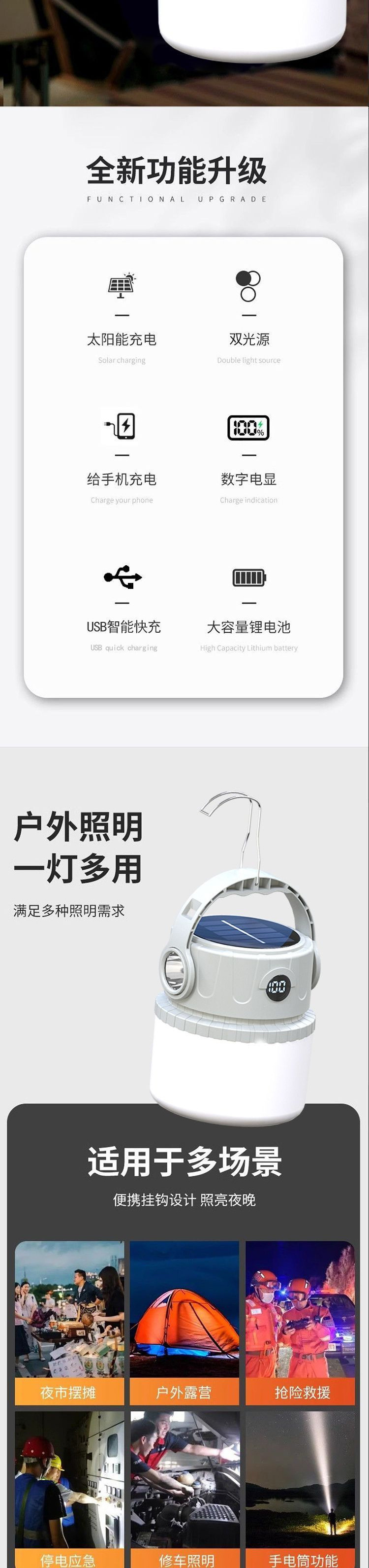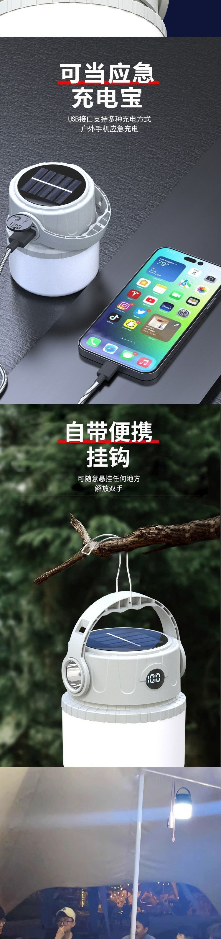 露營太陽能戶外充電超長續航應急燈野營帳篷擺攤充電式照明燈家用