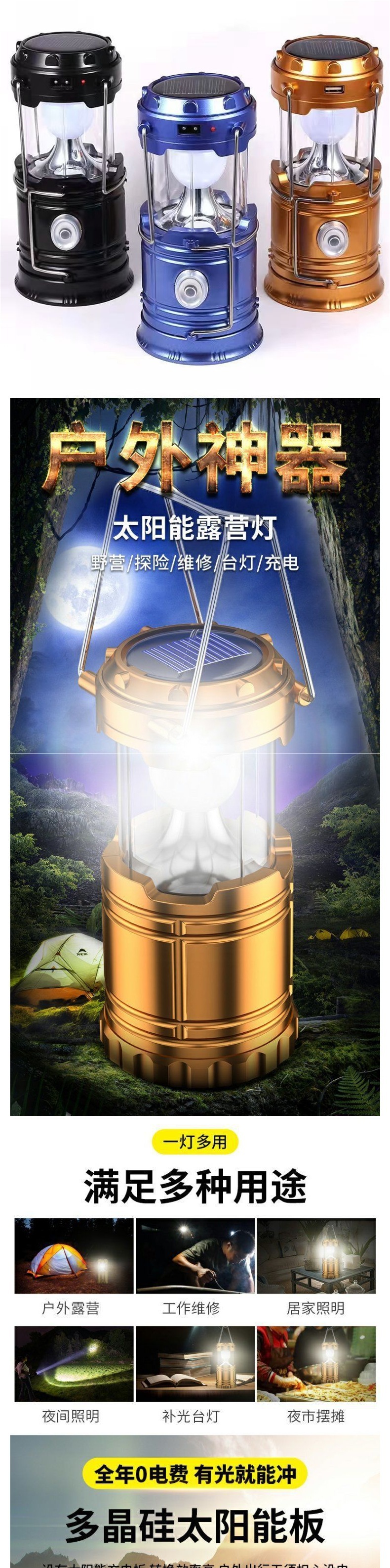 戶外照明燈野營露營燈通用型可攜式旅行帳篷營地拉伸式太陽能馬燈