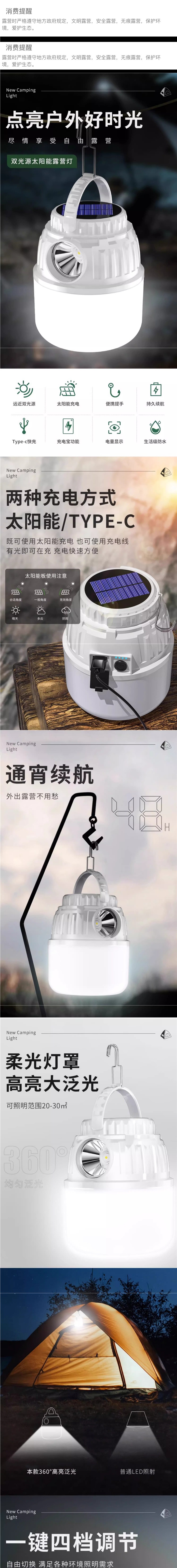 太陽能露營燈夜市擺攤照明停電應急燈充電超長續航戶外帳篷燈掛燈