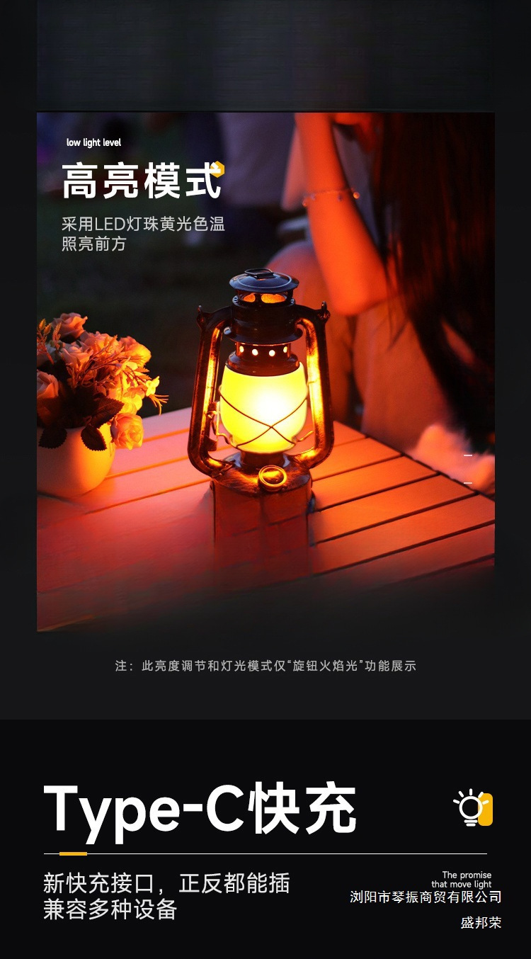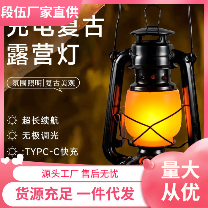 露營燈戶外充電復古馬燈營地野營氛圍煤油手提擺攤帳篷燈裝飾火焰