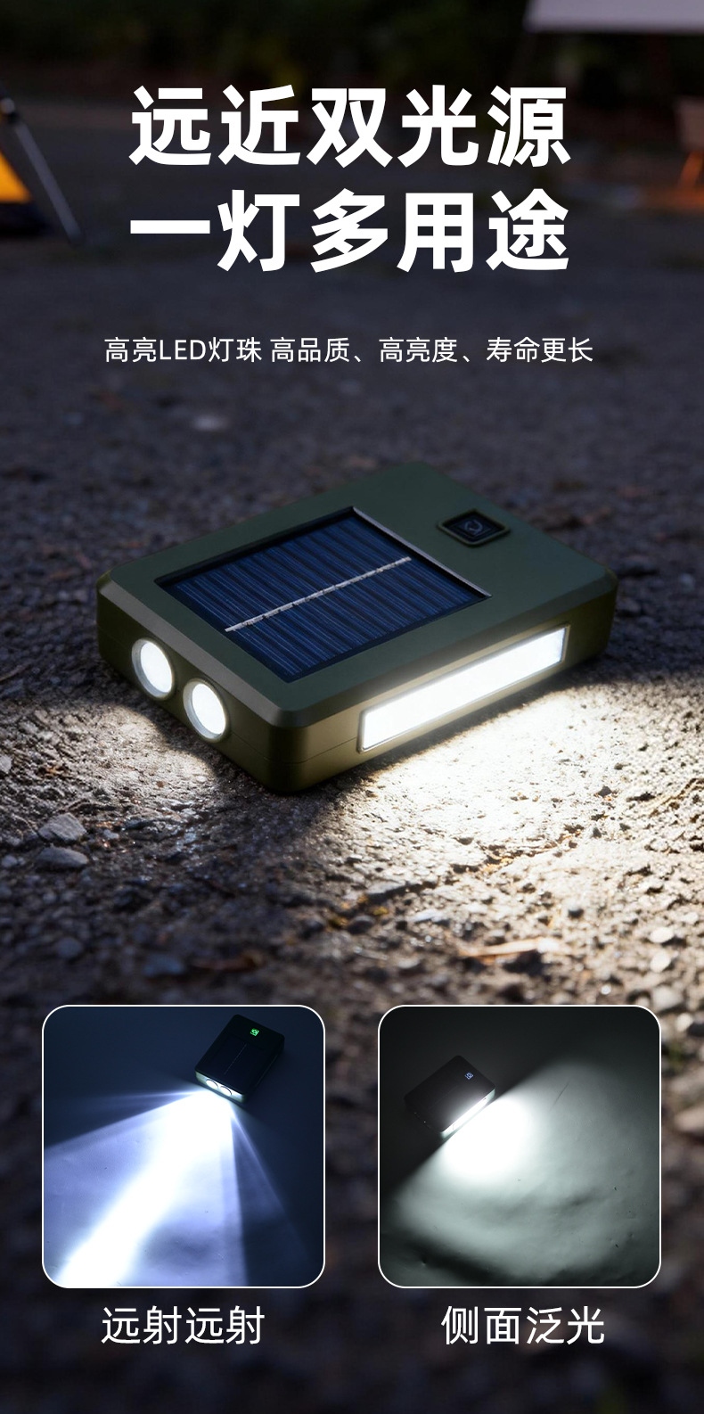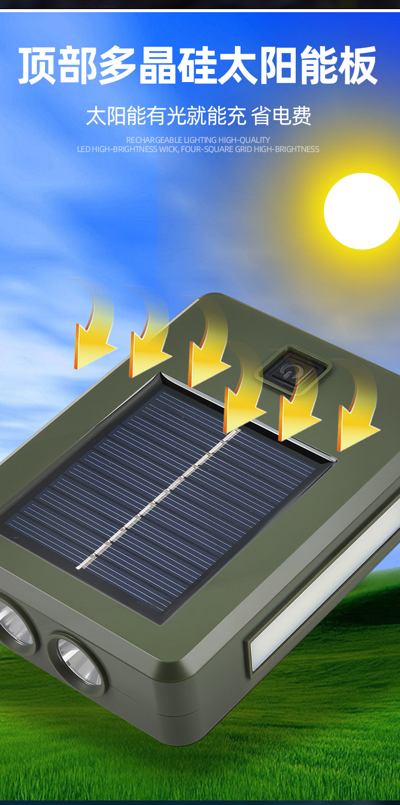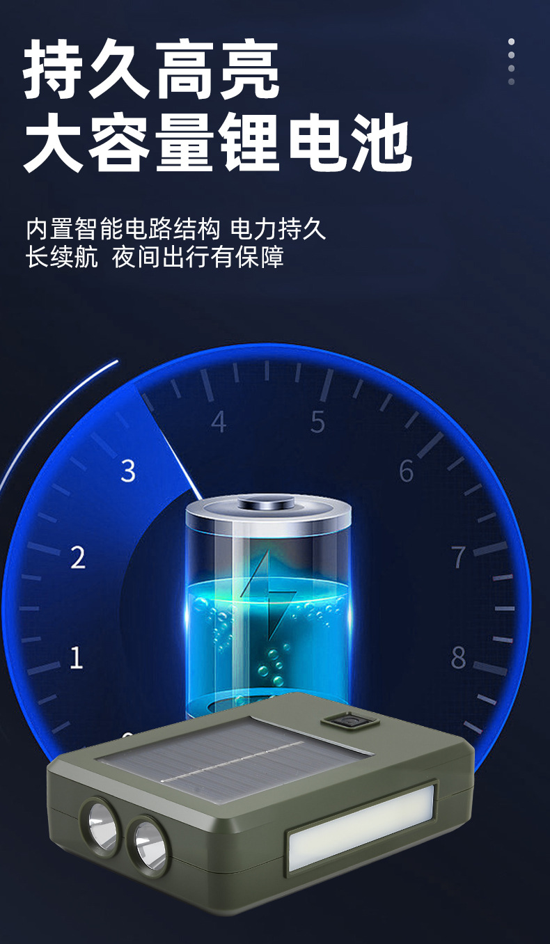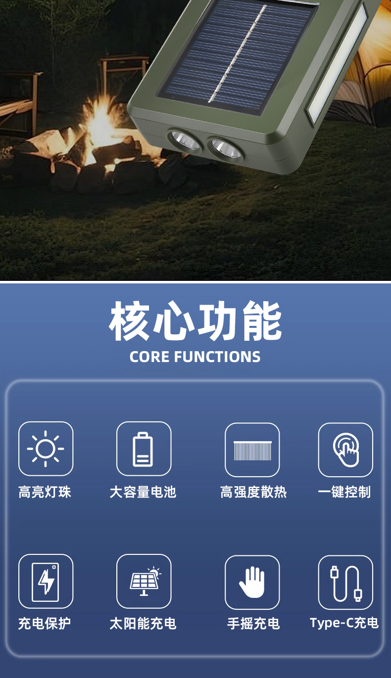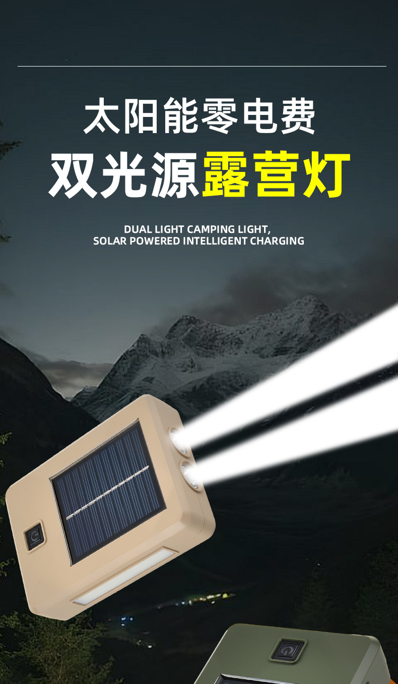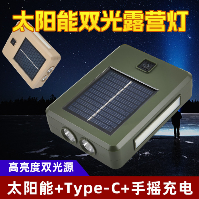 太陽能充電戶外照明燈強光手電筒LED家用應急燈可攜式移動露營燈