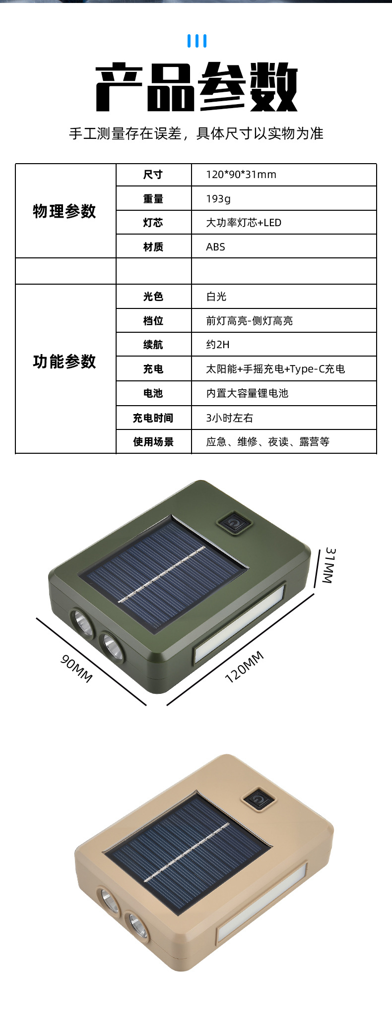 | 顔色 | 多功能卡其色露營燈 |