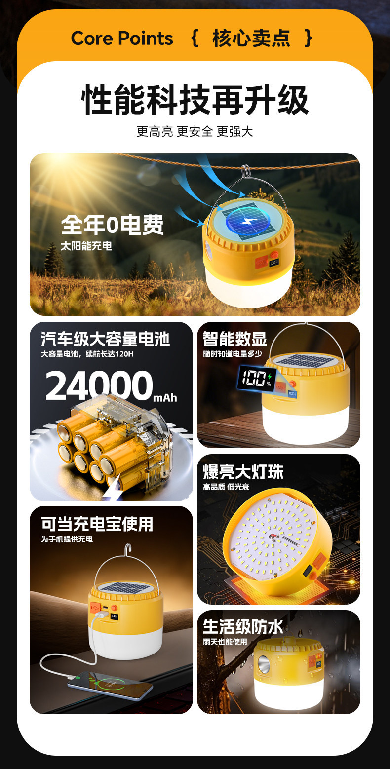 .太陽能充電照明燈超長續航LED超亮地攤燈夜市擺攤戶外應急露營燈