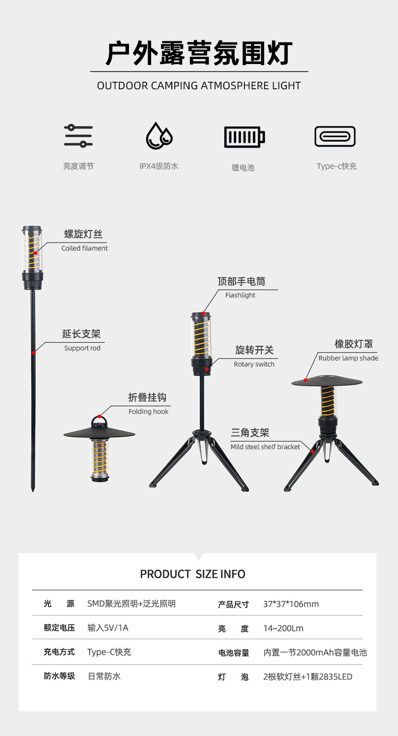 CLS露營燈戶外可攜式小夜燈帳篷天幕LED照明燈氛圍燈應急手電營地燈