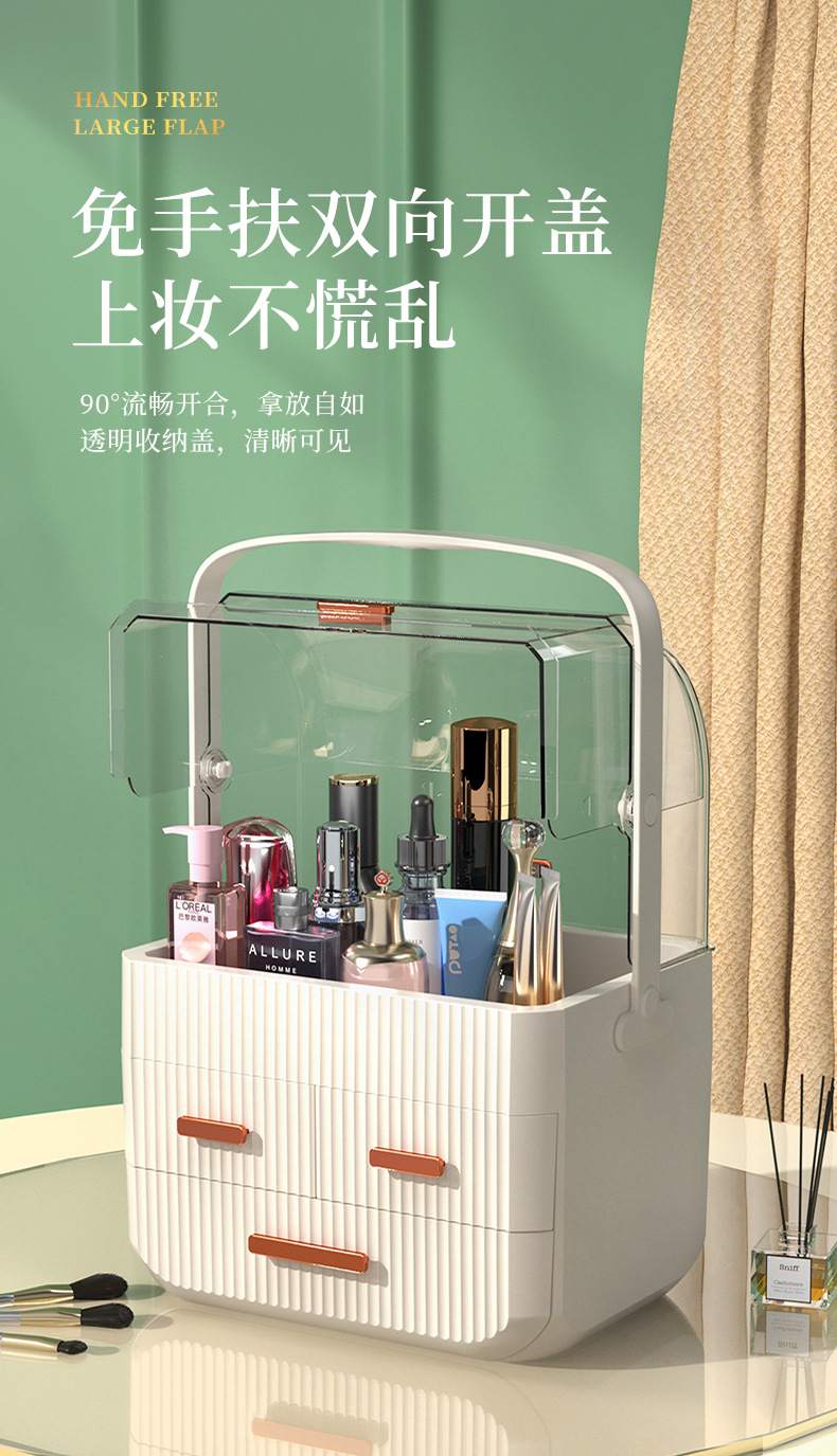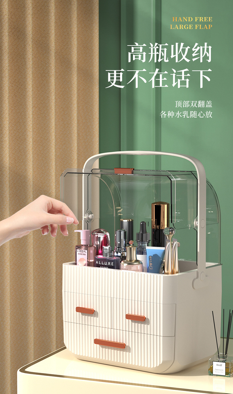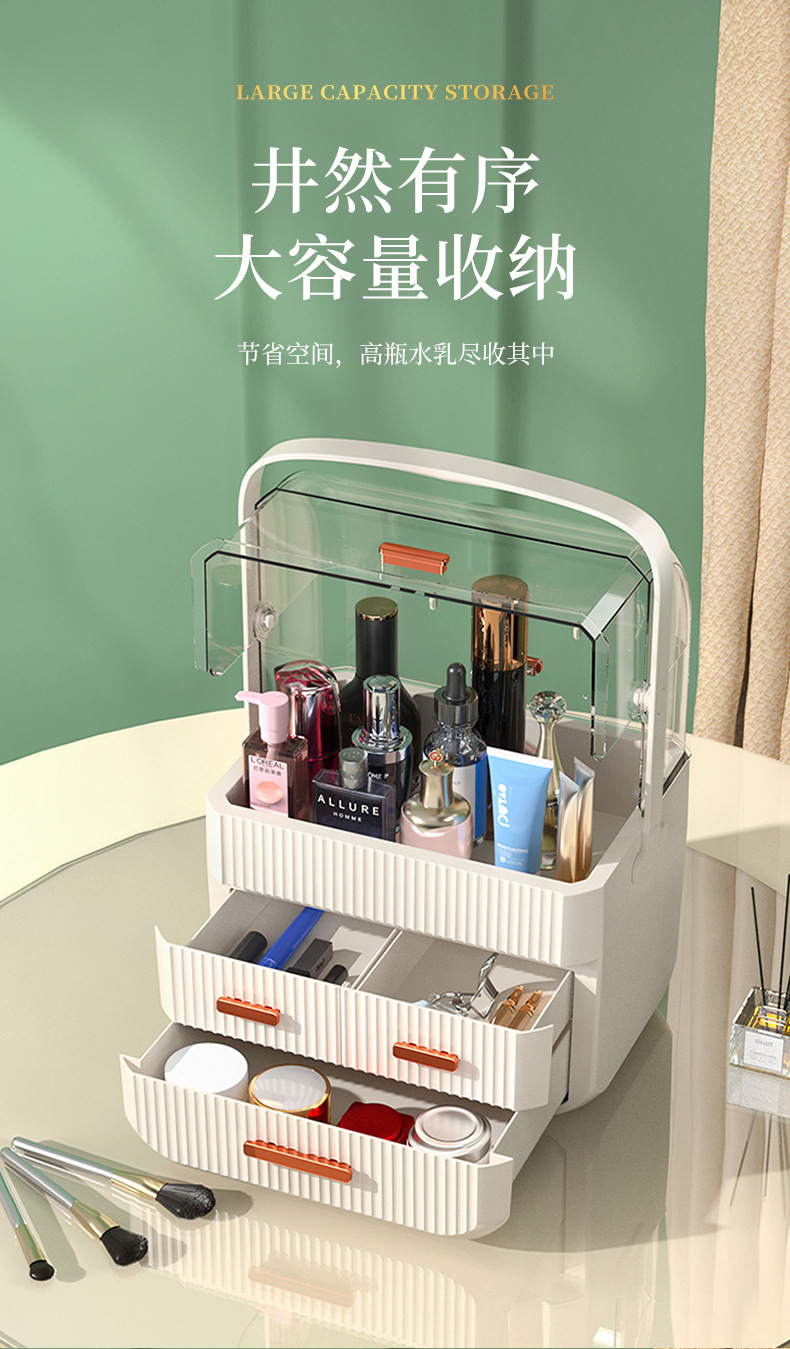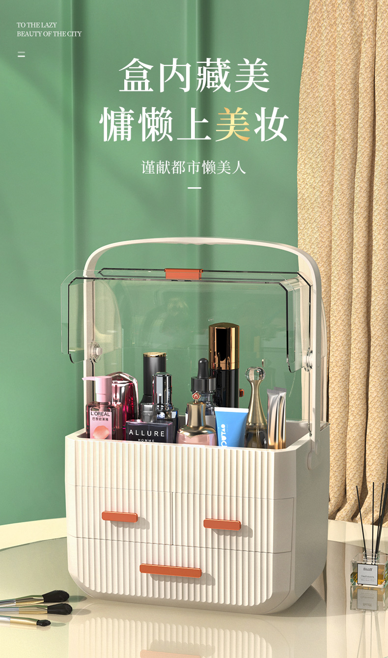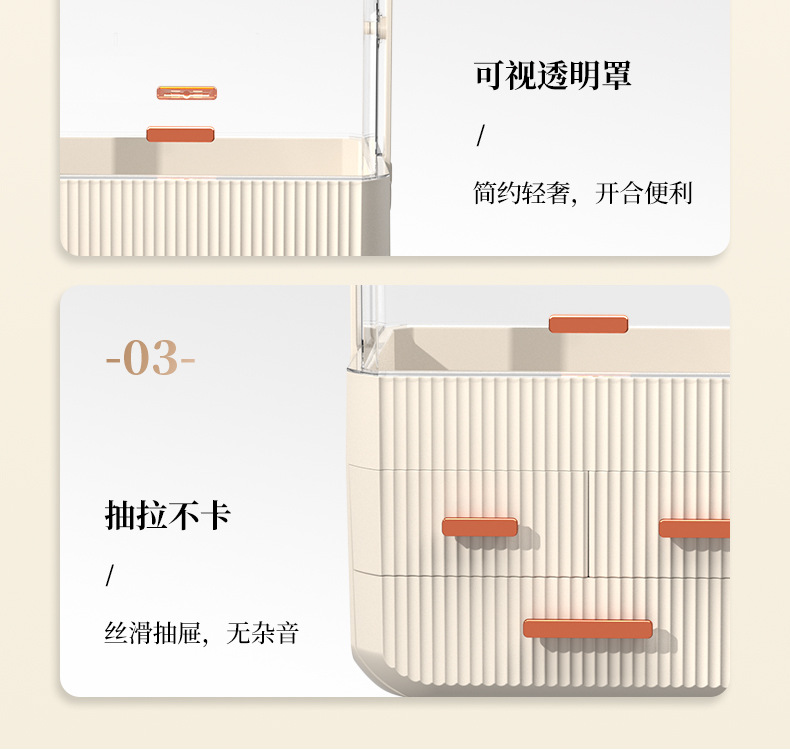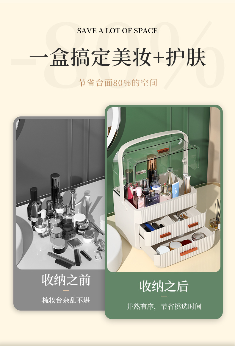 妮美鴨抽屜式分格口紅面膜整理盒防塵儲物盒桌面透明化妝品收納盒