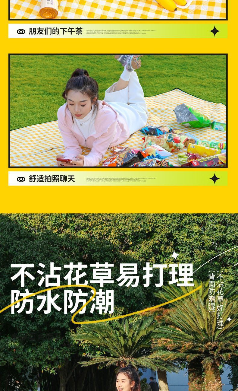 野餐墊防潮墊加厚露營帳篷內墊可攜式草坪沙灘防水春遊墊子戶外地墊