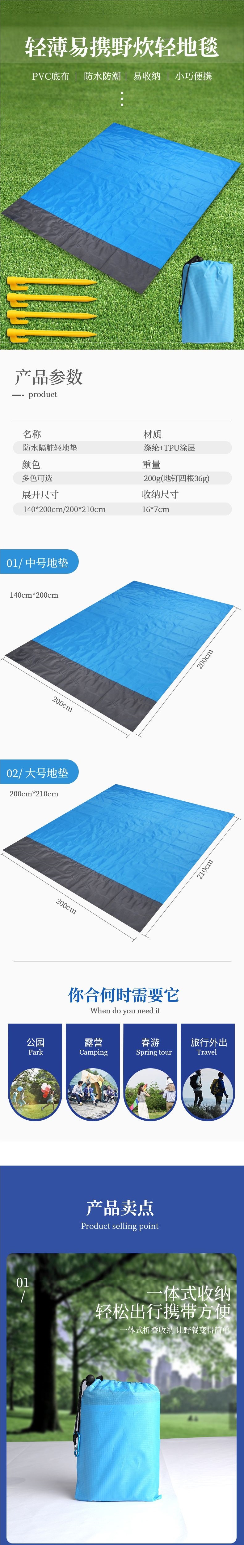 野餐墊超薄口袋防潮墊沙灘防水防沙超輕折疊可攜式地墊毯蓆子海邊