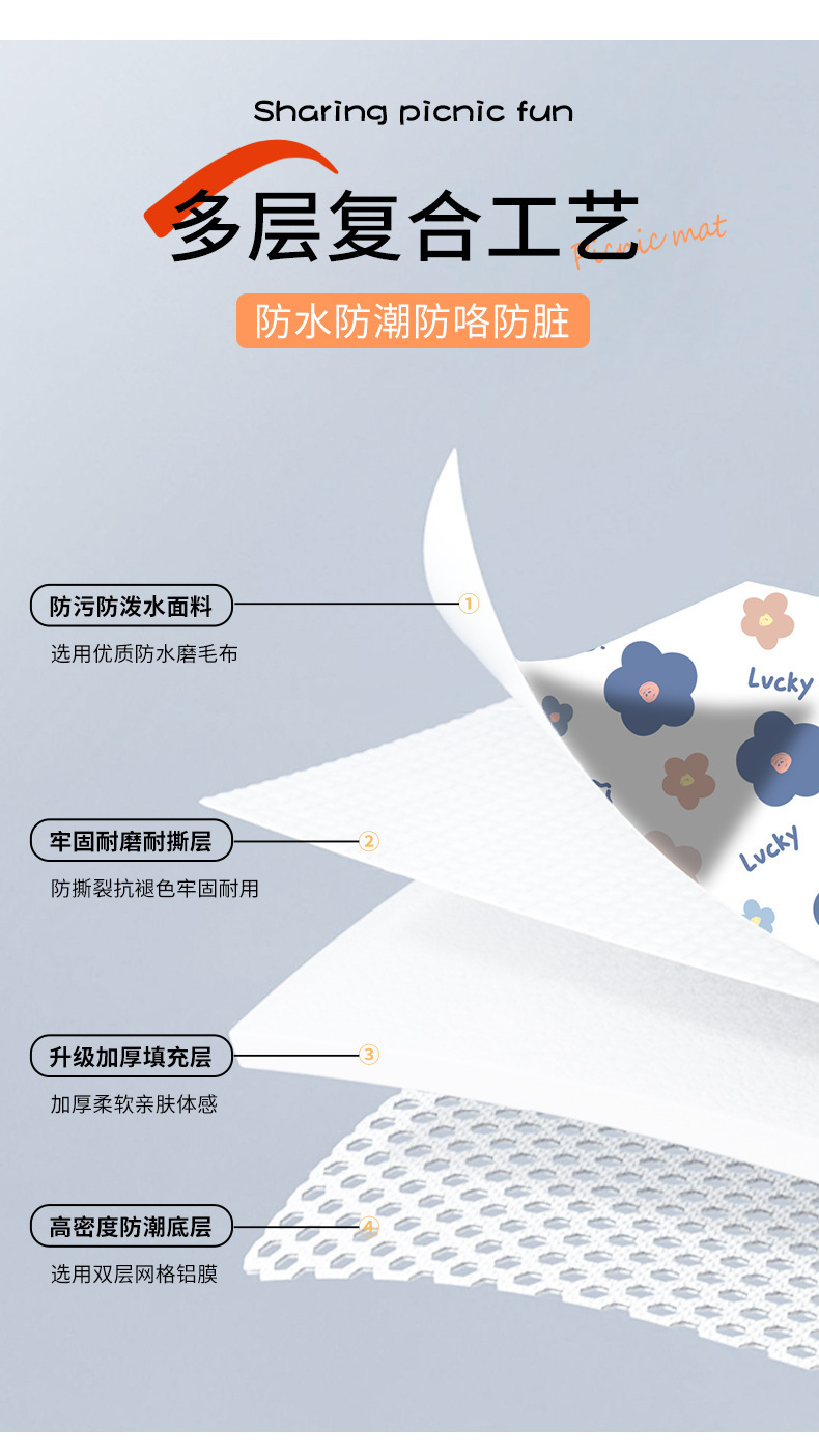 新款野餐墊戶外露營野餐坐墊公園春遊防潮墊防水野餐墊沙灘露營墊