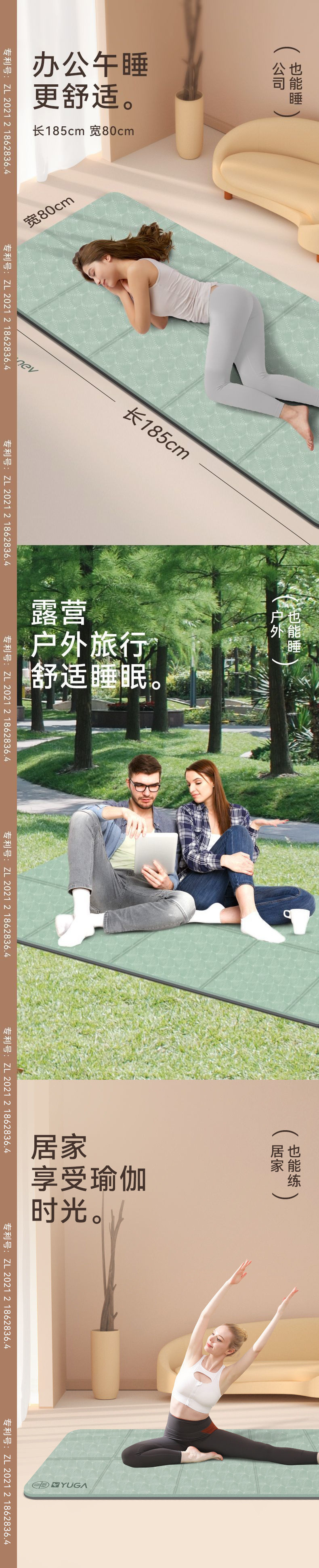 折疊瑜珈墊小學生瑜珈墊學生午睡可攜式可折疊瑜珈墊加厚戶外睡墊