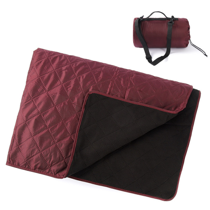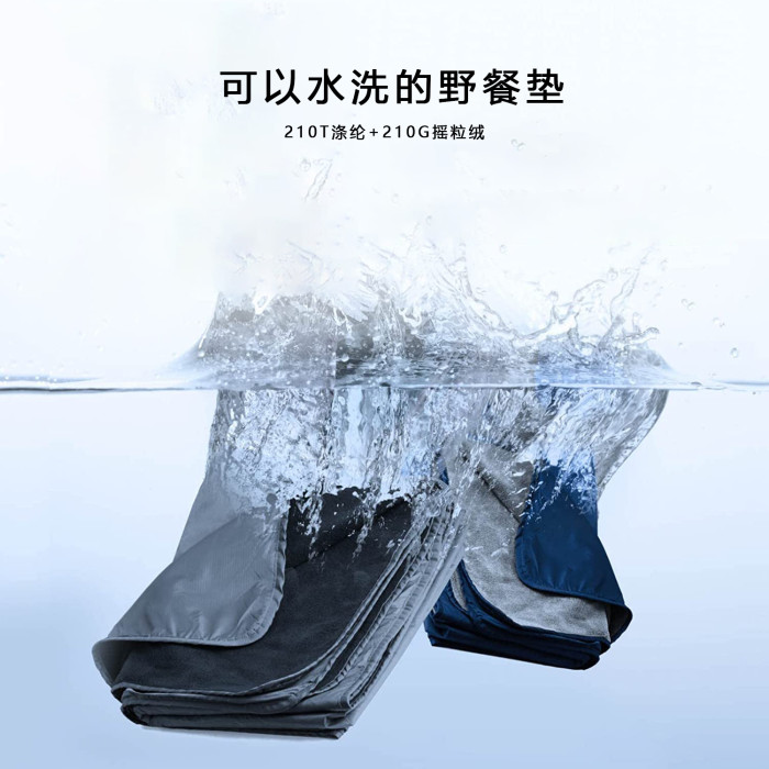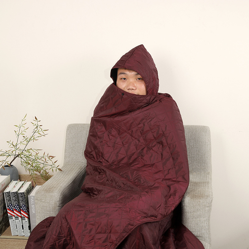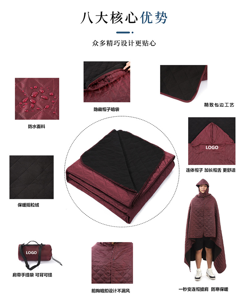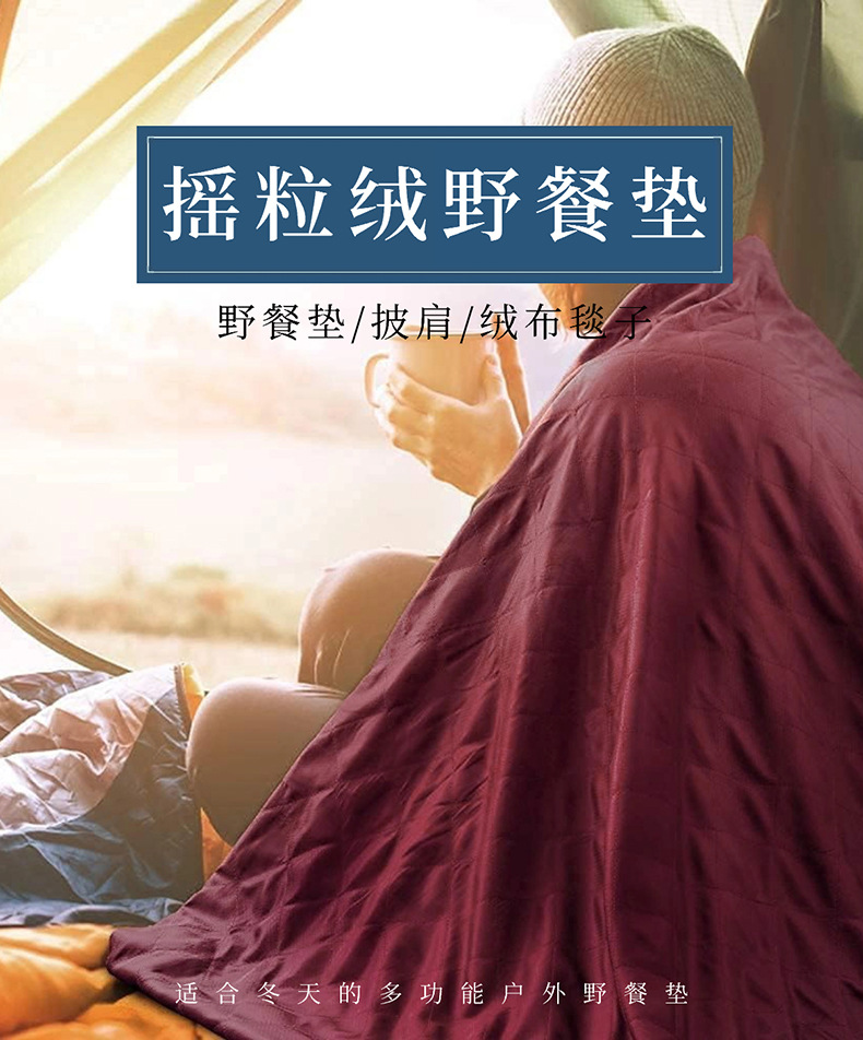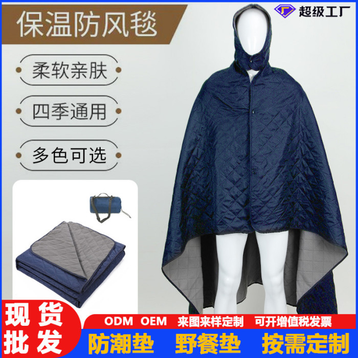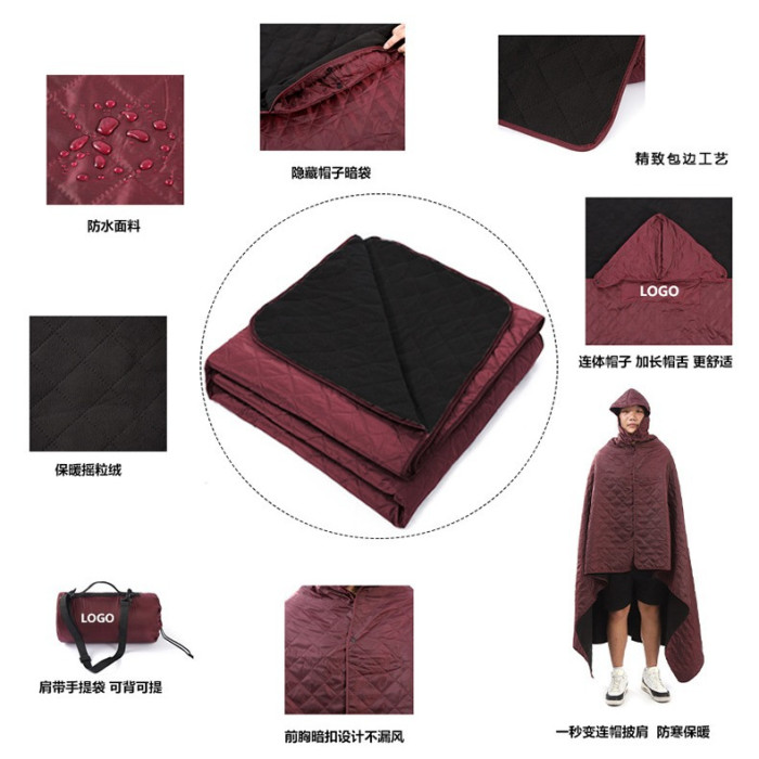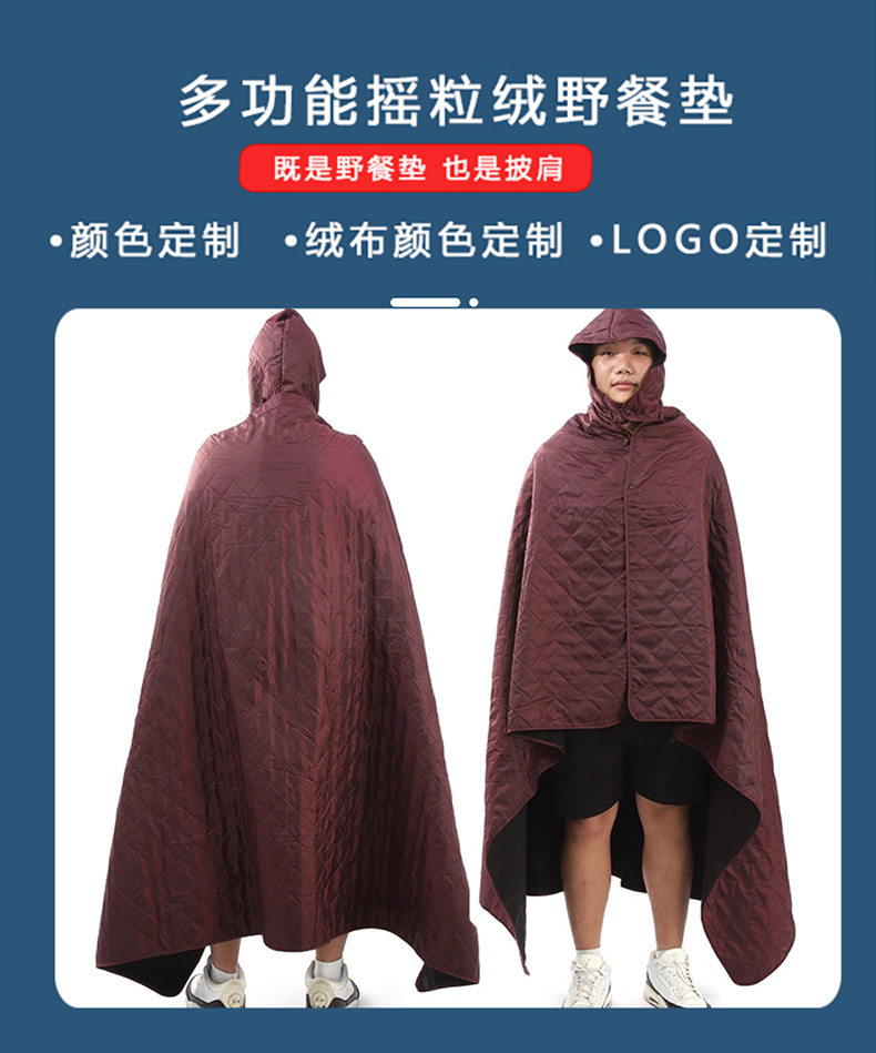 搖粒絨野餐墊加厚防水戶外露營披肩帶帽款野餐毯加大保暖地墊