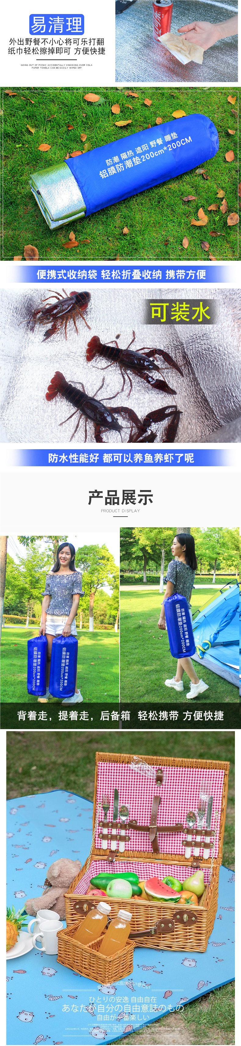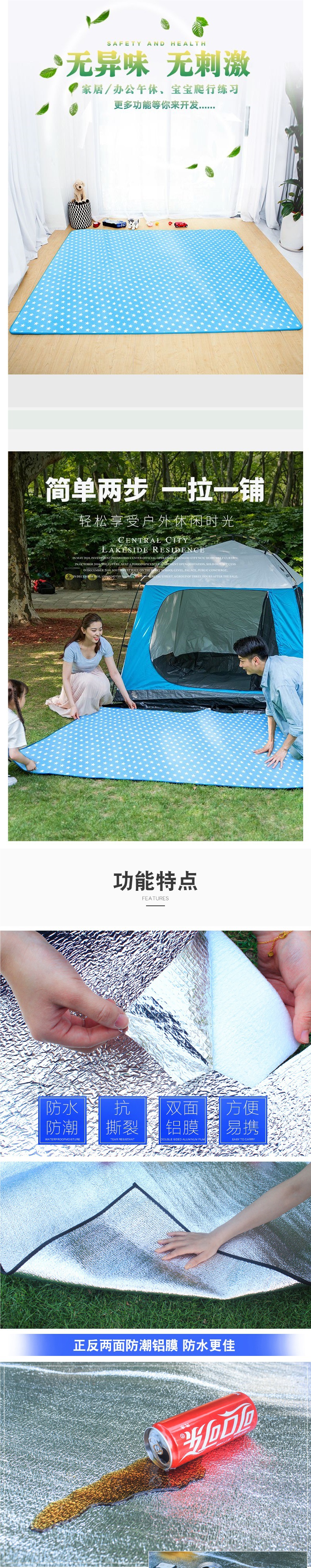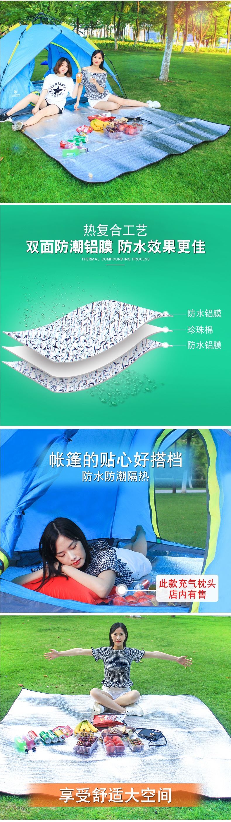 露營鋁膜防潮墊子戶外單雙人野餐墊宿捨防水睡墊布家用帳篷野炊