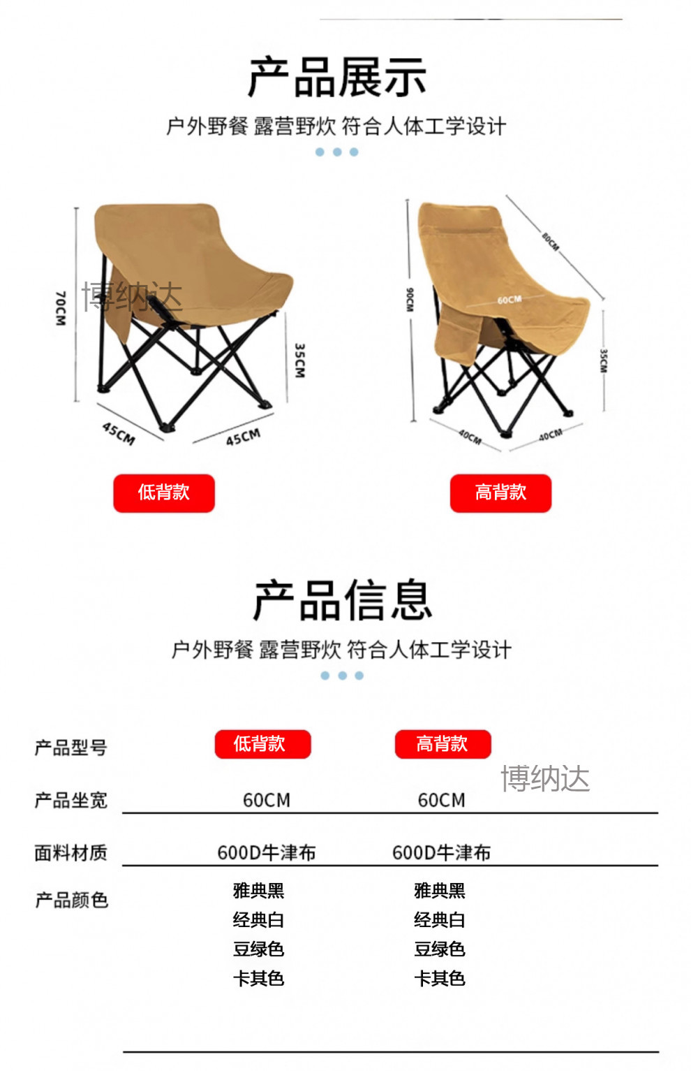 戶外折疊低背月亮椅子替換布面高背月亮椅牛津布椅子面