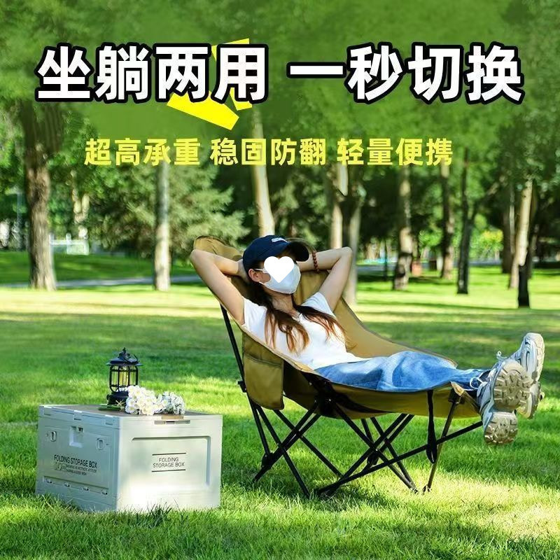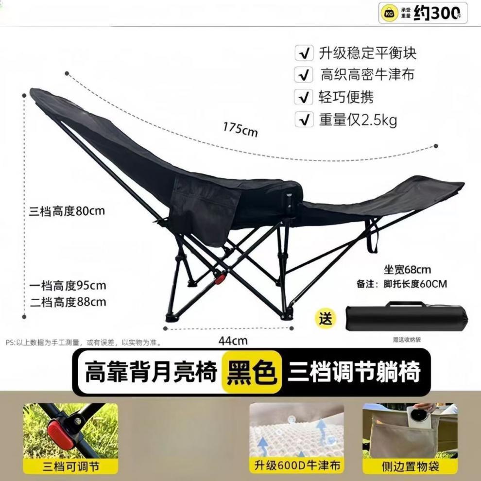 戶外折疊椅三檔調節躺椅月亮椅露營可攜式折疊椅靠背午休沙灘椅包