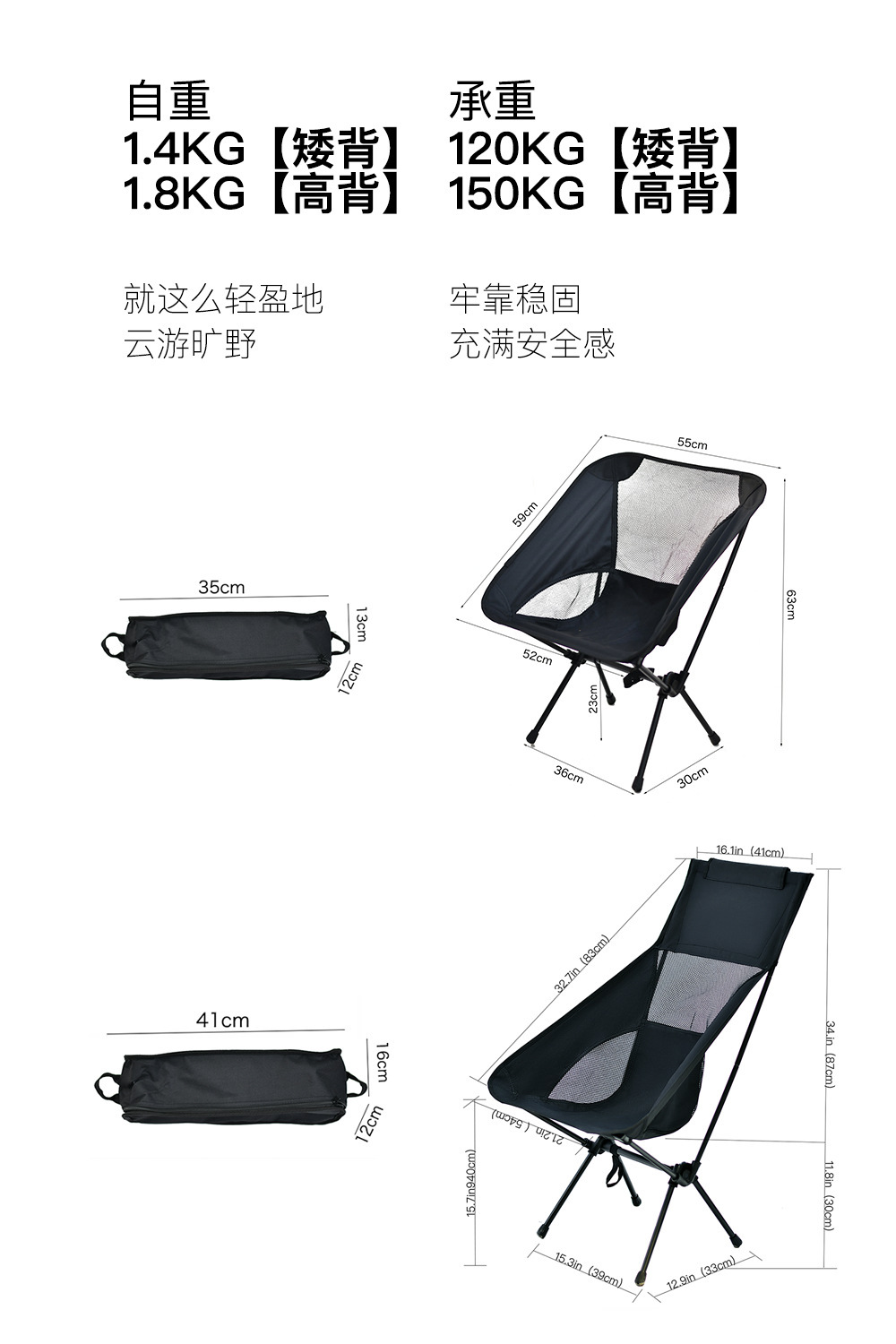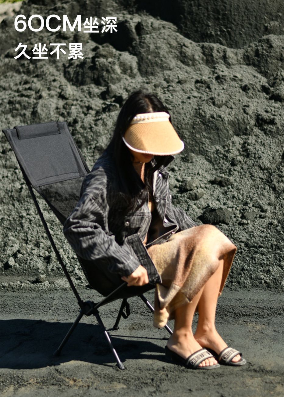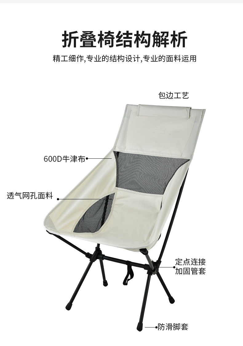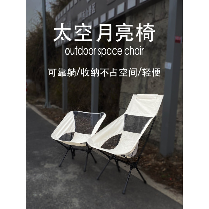 戶外透氣月亮椅輕便可攜式休閒太空折疊椅釣魚沙灘椅露營椅高背