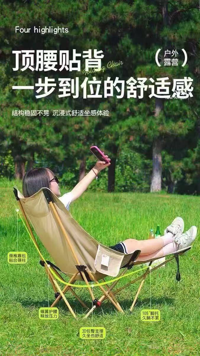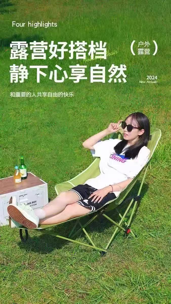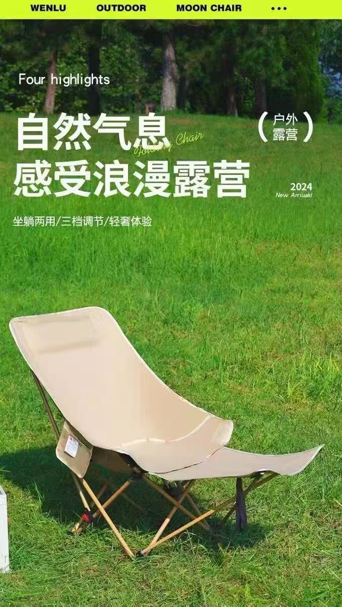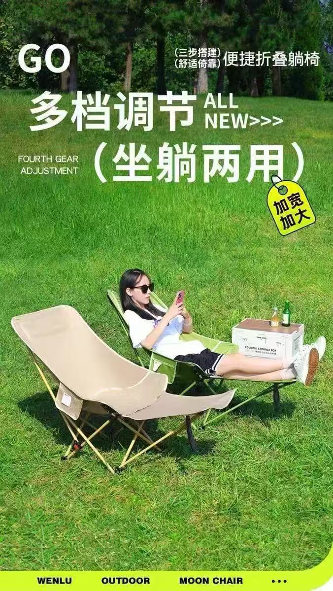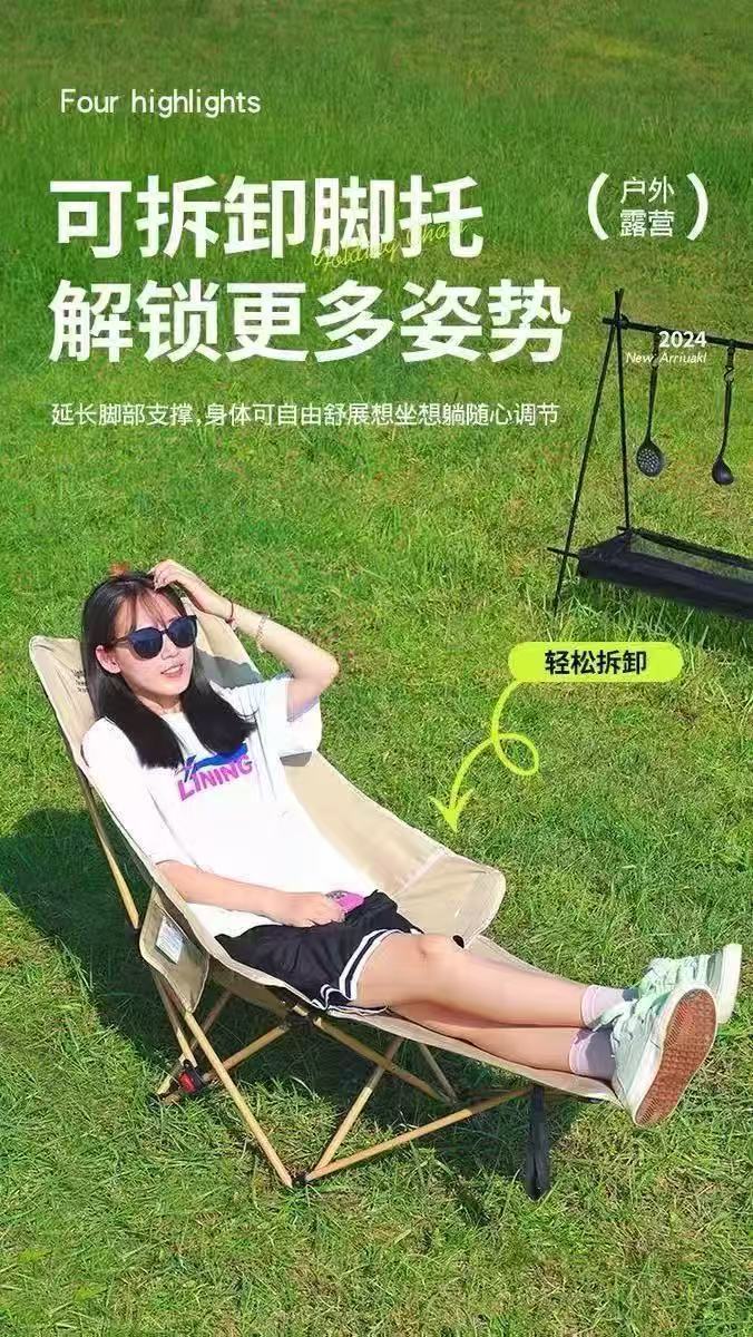 折疊躺椅簡易折疊釣椅可攜式辦公室午休露營椅子可調節帶腿托月亮椅