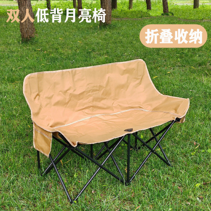 新款戶外雙人低背月亮椅露營可攜式野餐折疊椅輕便休閒雙人折疊椅