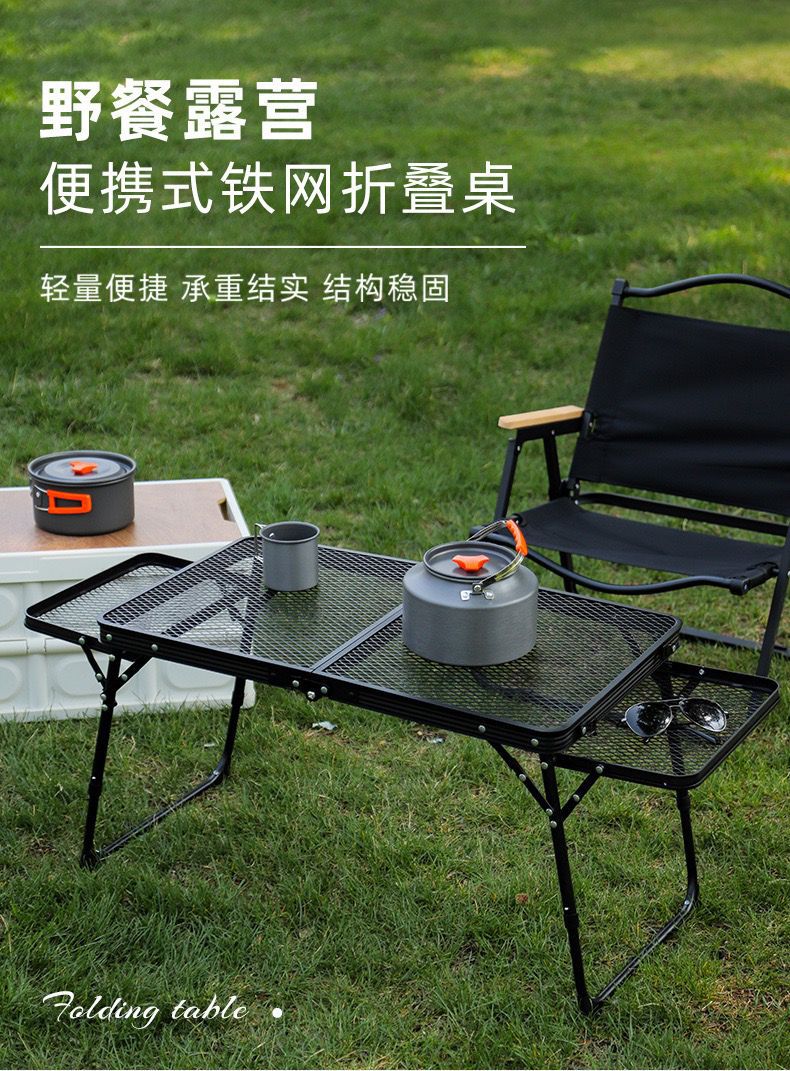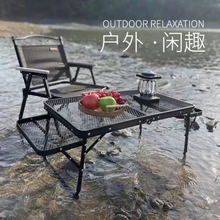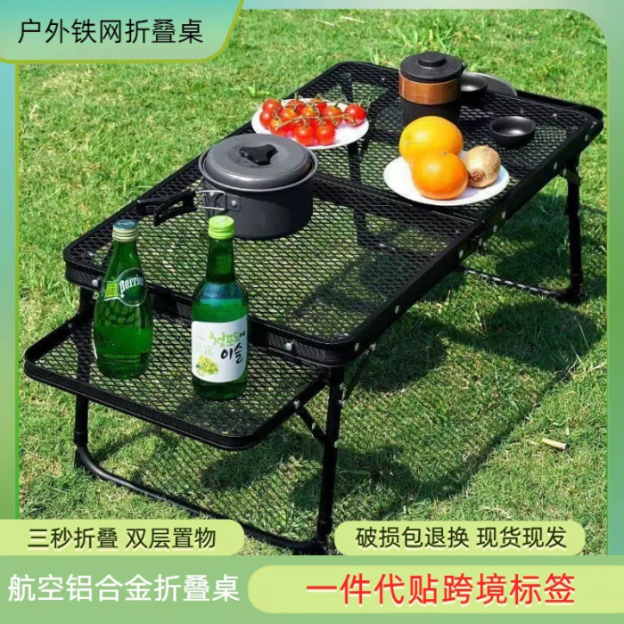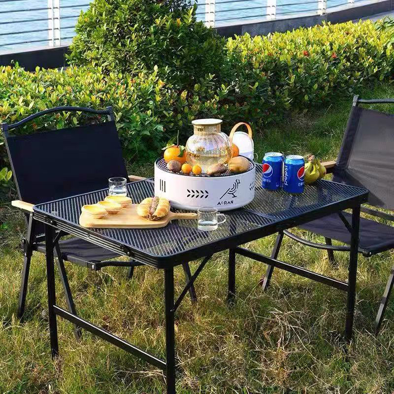 新款戶外折疊桌椅露營野餐桌燒烤網格桌可折疊攜帶方便網紅桌子