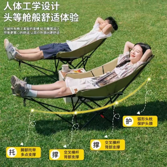 嚴選可攜式露營月亮椅野營躺椅戶外折疊椅沙灘椅辦公室午休腿托躺椅