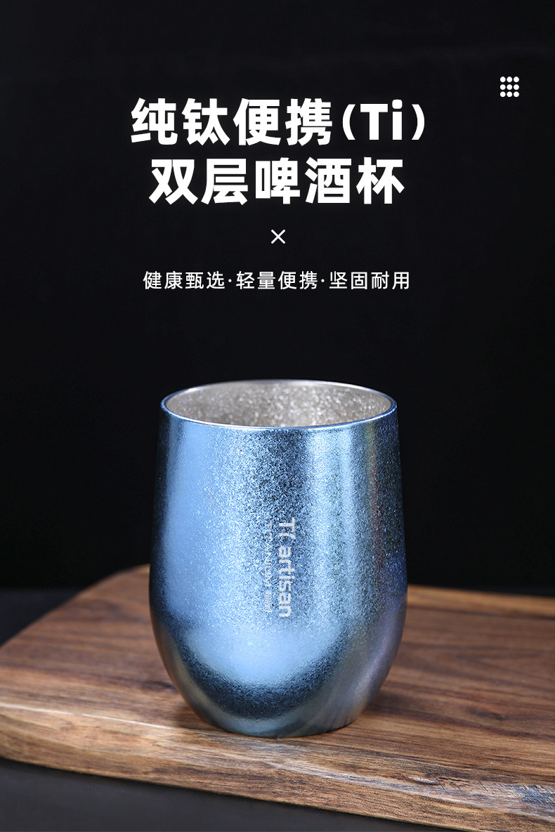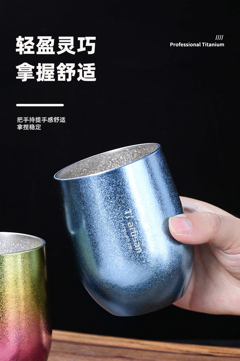 鈦工匠純鈦雙層鈦水杯戶外露營啤鈦杯子家用純鈦隨手杯咖啡杯鈦杯
