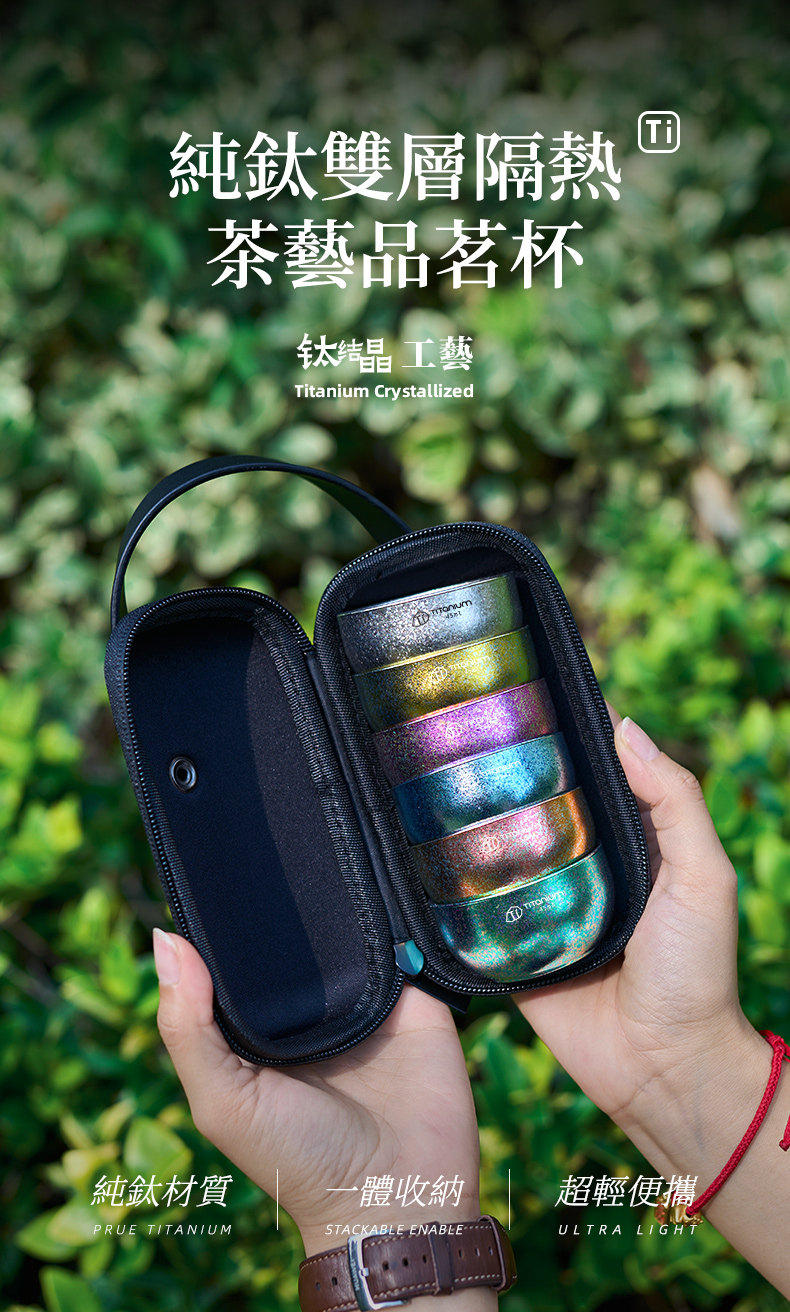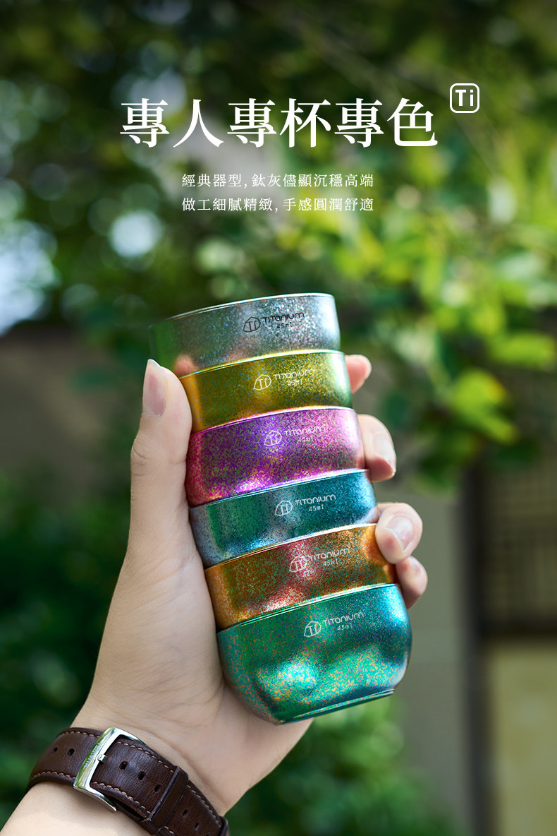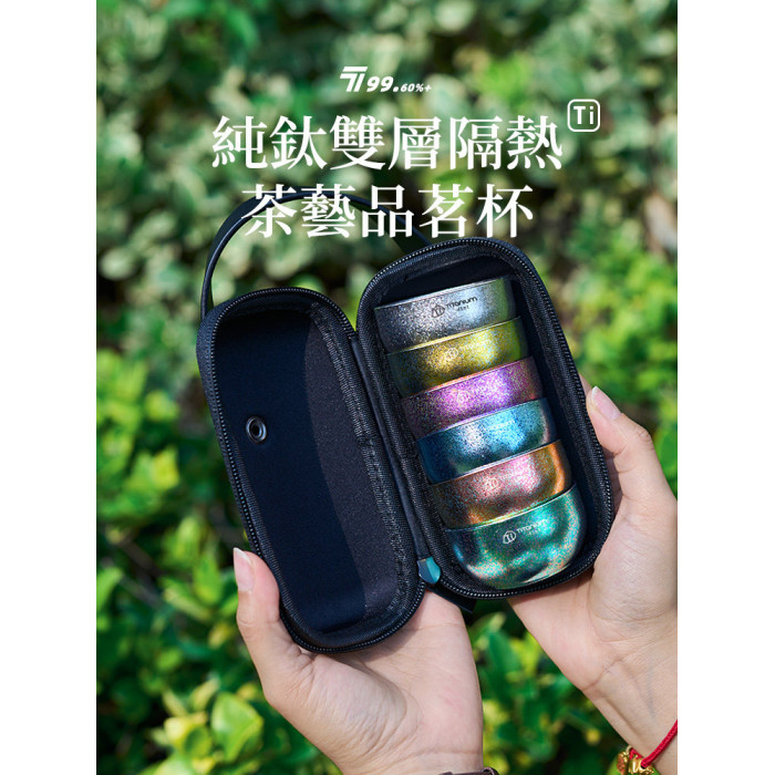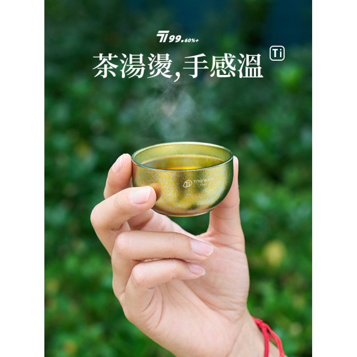 戶外純鈦小茶杯雙層隔熱防燙露營旅行茶具主人杯鈦杯泡茶鈦小茶杯