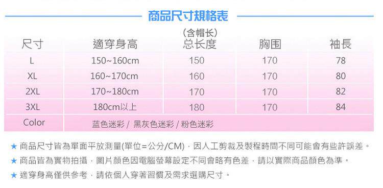 | 雨具種類 | 摩托車/電瓶車雨披 |