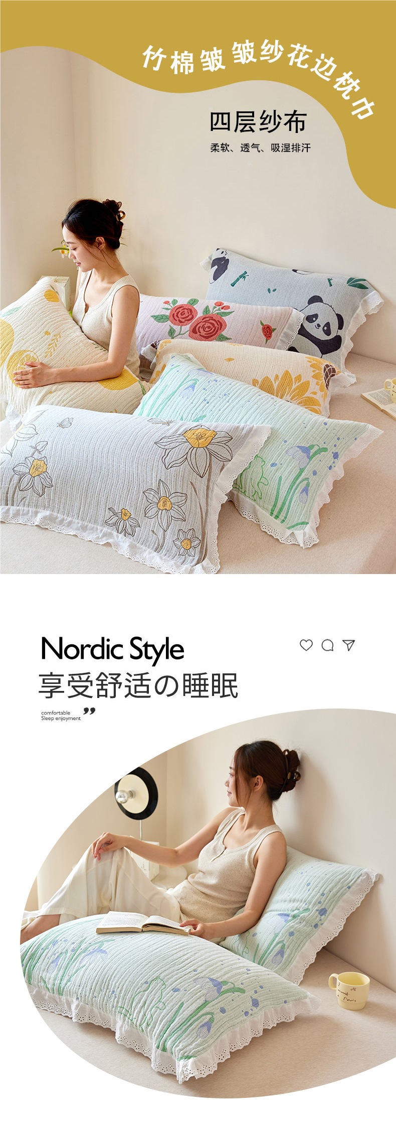 夏季竹棉枕巾蓋竹纖維枕頭巾一對涼感枕巾墊夏天2025新款枕頭蓋巾