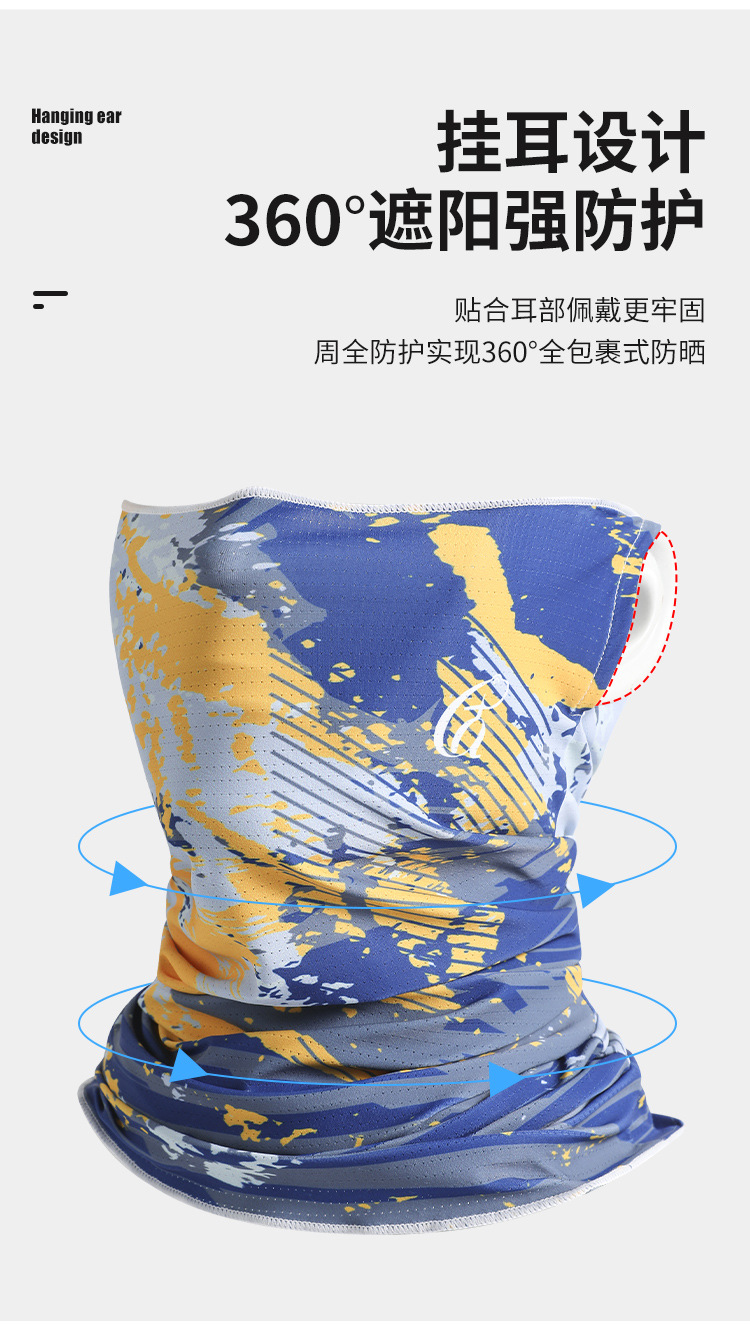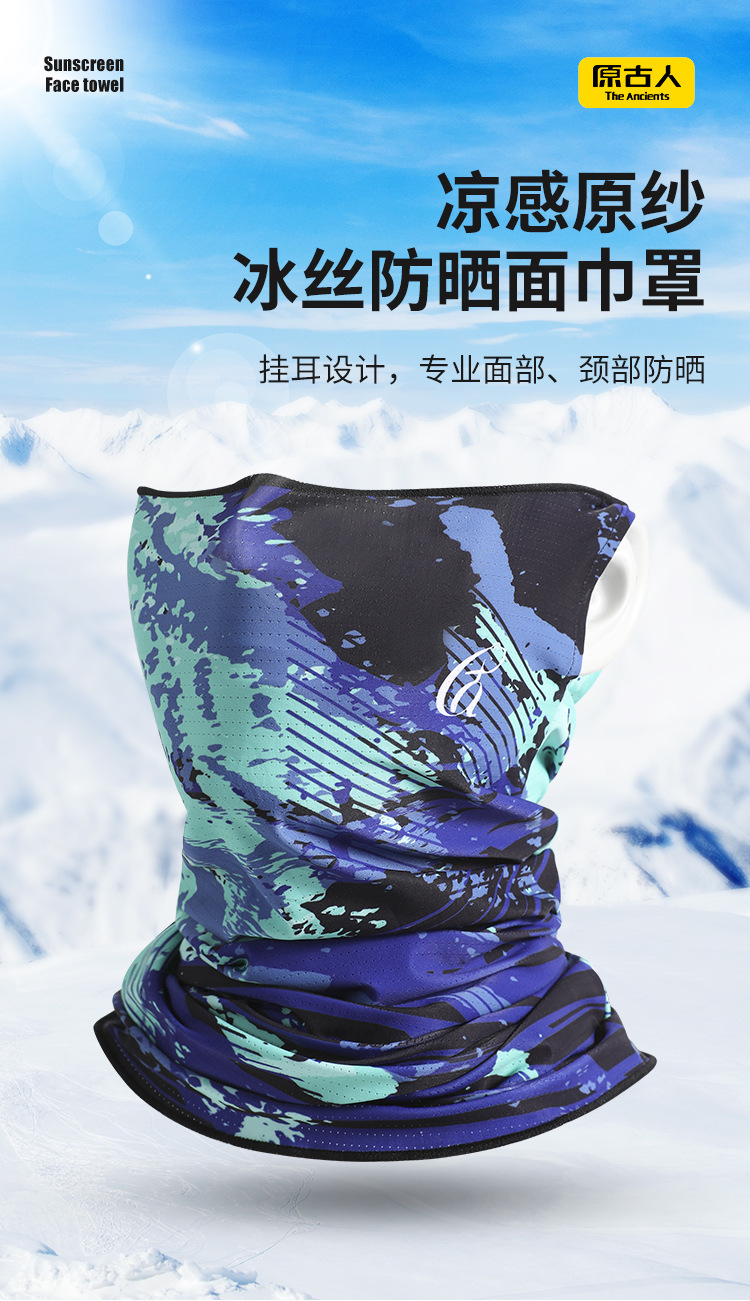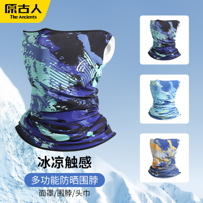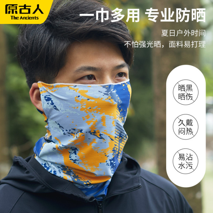 原古人防曬面罩男士冰絲薄款圍脖套魔術頭巾塗鴉面巾戶外騎行釣魚