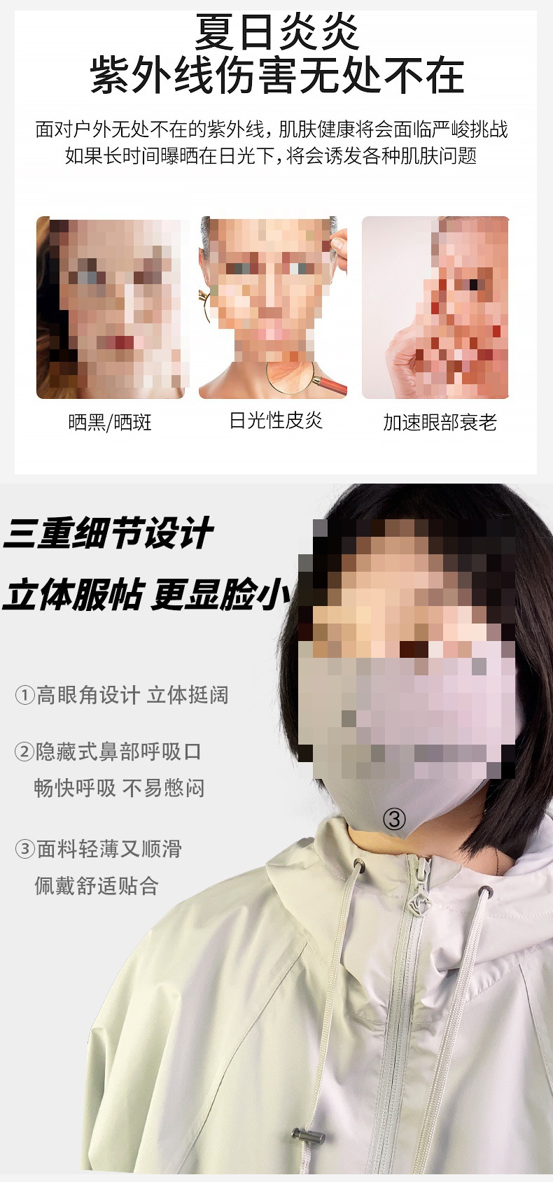 護眼角防曬面罩夏季女腮紅立體口罩防紫外線透氣冰絲高顔值顯臉小