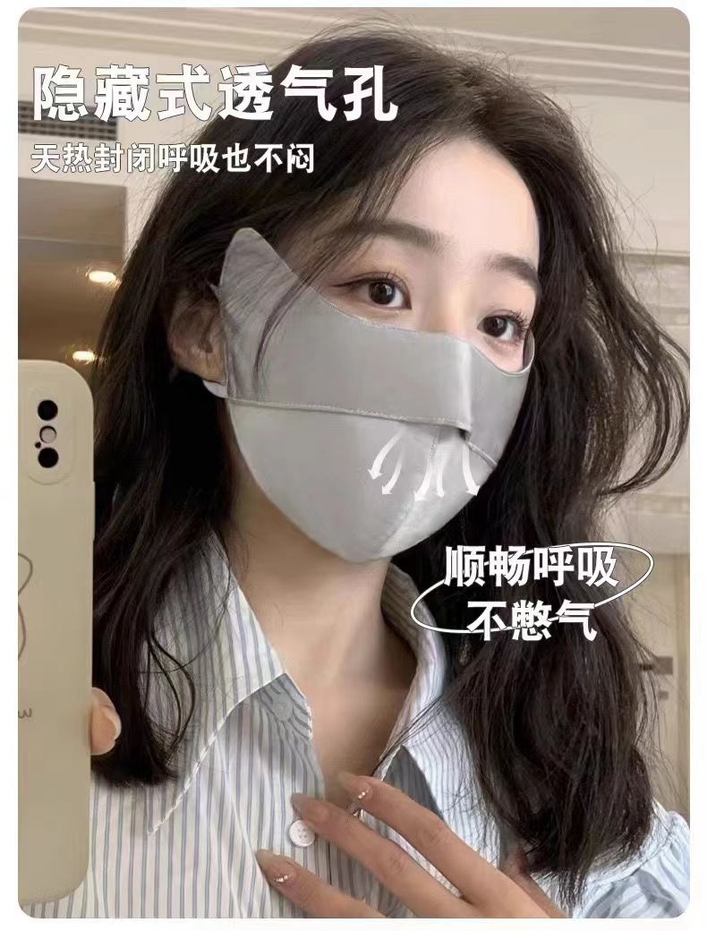 UPF50+桑蠶絲雙層真絲防曬口罩加大防紫外線遮陽面罩騎行