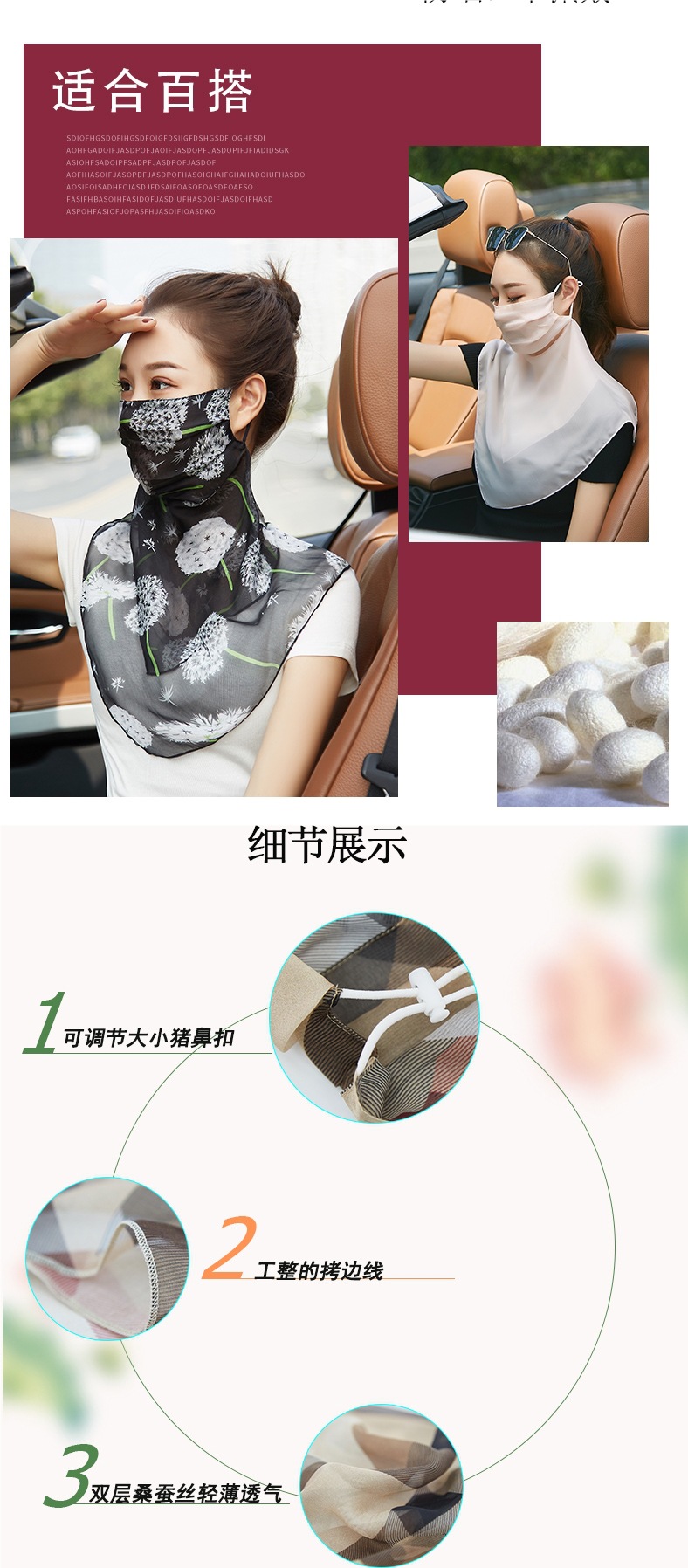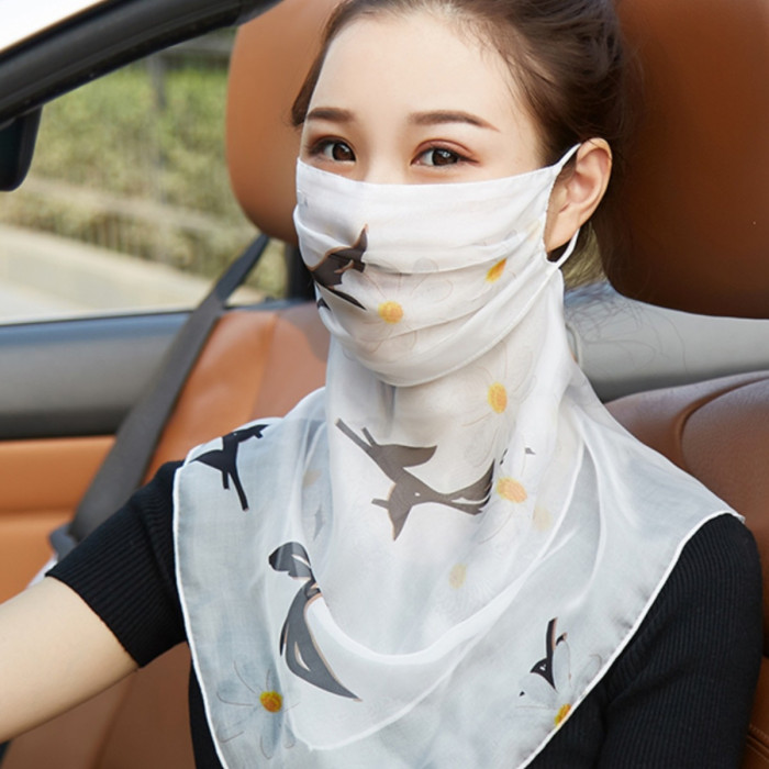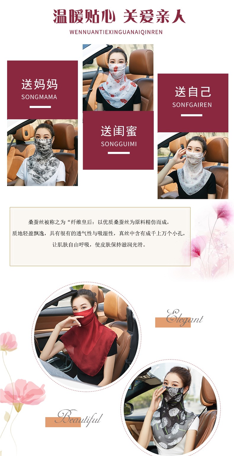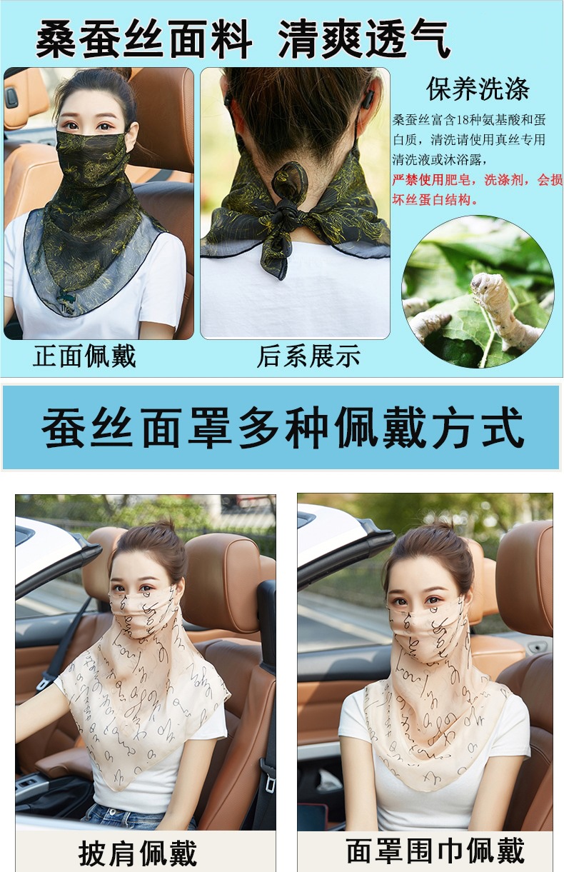 桑蠶絲真絲口罩護頸透氣薄款夏季防曬面紗女戶外遮臉遮陽面罩